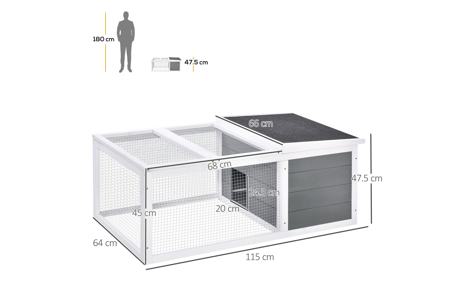• Main hutch dimension: 64L x 43W x 47.5H cm