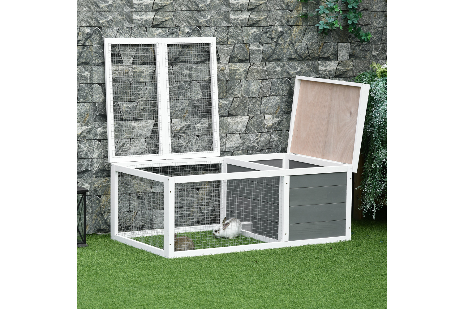• Spacious living room & activity space provide rabbits a large space to live, rest and play