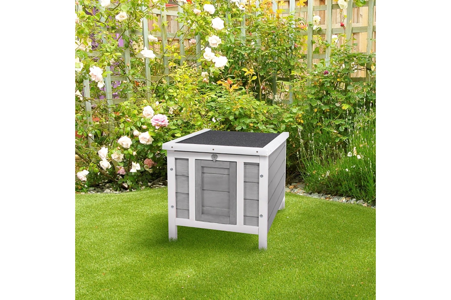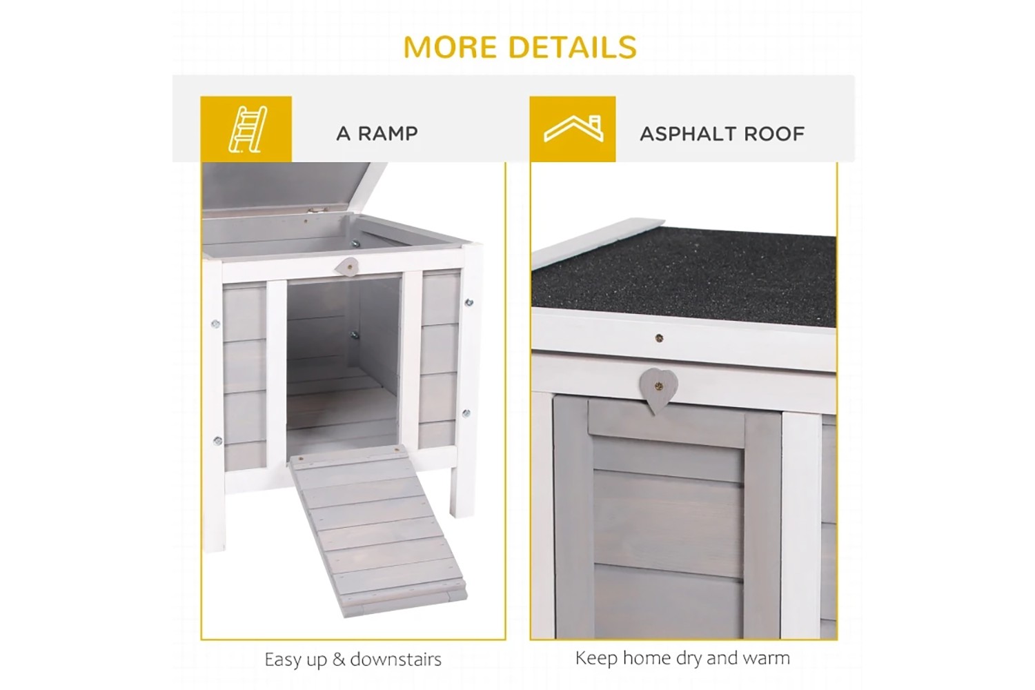- Asphalt roof keeps pets sheltered from rain and sun