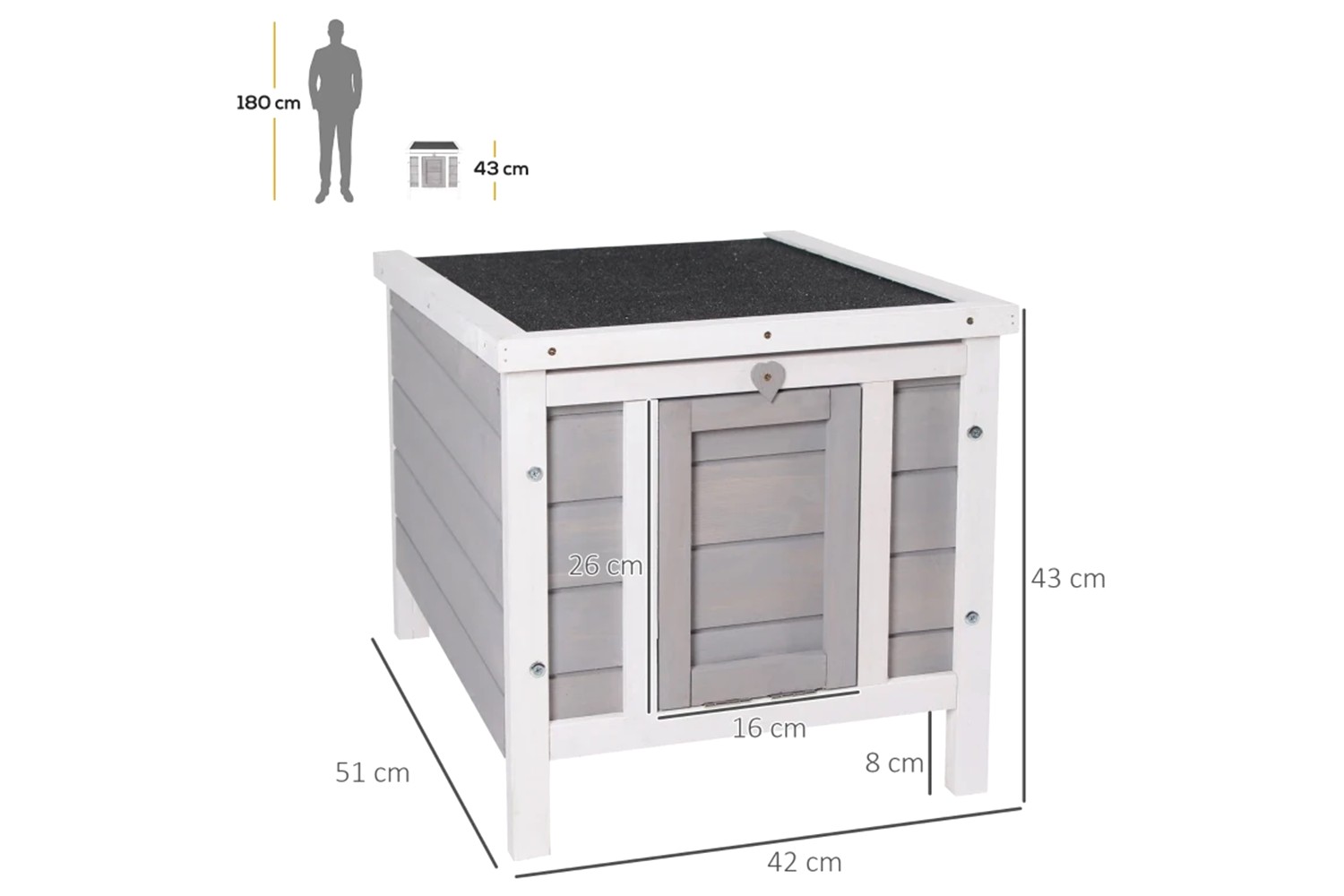 - Main house dimensions: 45 L x 38 W x 29 H cm
