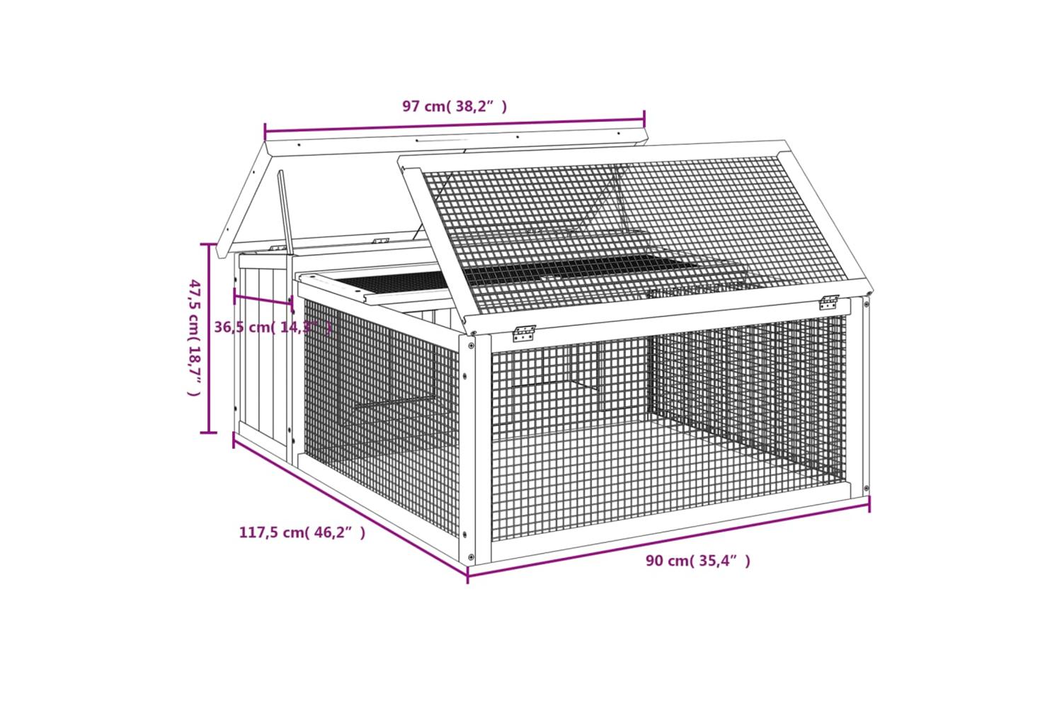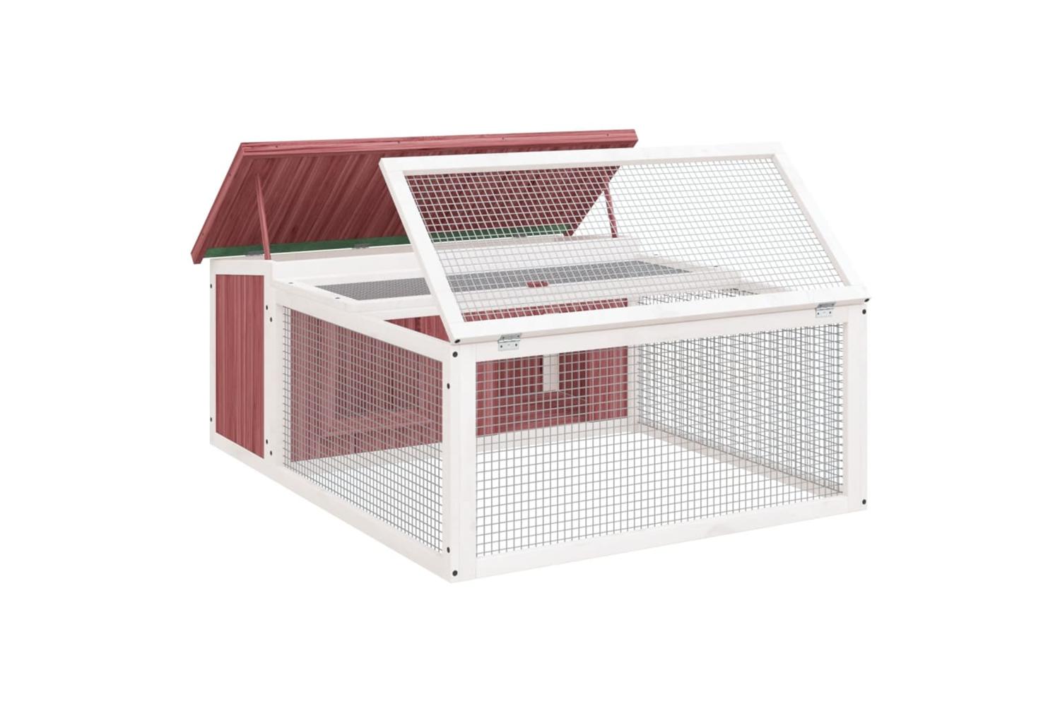 This rabbit hutch with a spacious activity centre and a sleeping area, offers a safe and comfortable place for your furry friends like bunnies, guinea pigs, small ducks, and other small pets to play and rest.
