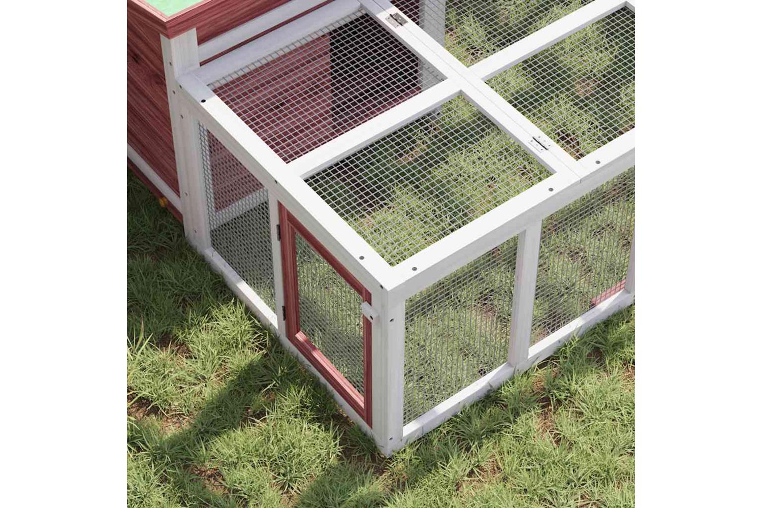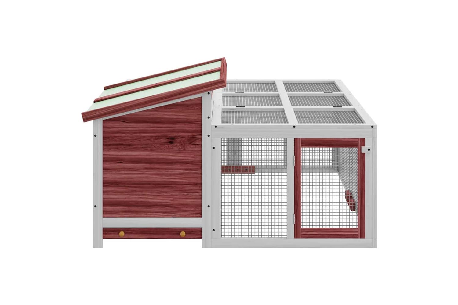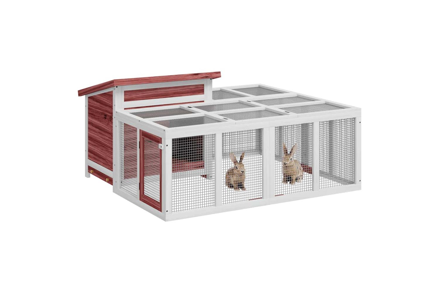 This rabbit hutch with a spacious activity centre and a sleeping area, offers a safe and comfortable place for your furry friends like bunnies, guinea pigs, small ducks, and other small pets to play and rest.