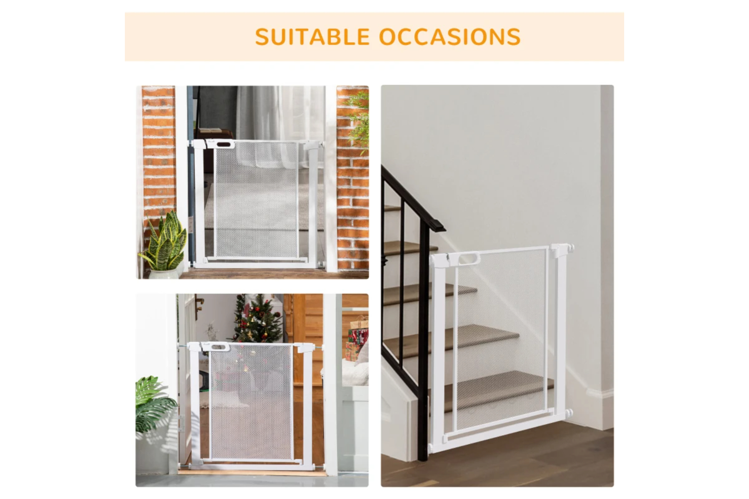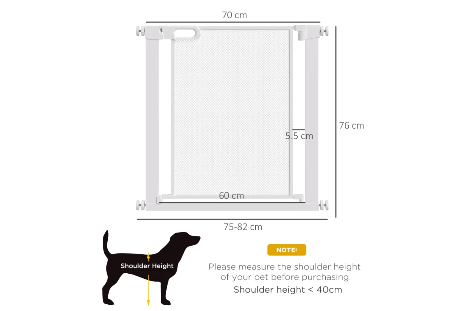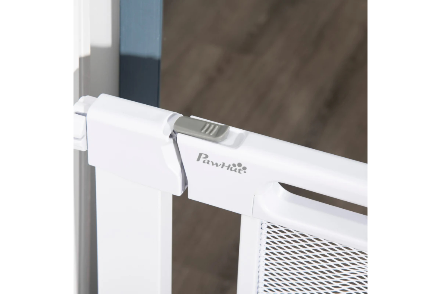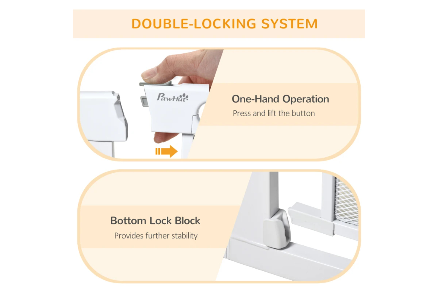 This pressure fit stair gate from PawHut can keep pets out of restricted areas. It has a width that can be adjusted from 75-82 cm to fit various locations and is appropriate for stairways and halls. A certain amount of convenience is offered by the automatic closure feature. For your pets' security, the mechanical closing latch demands that the button be hit in order to open the gate. It is a secure and reliable way to prevent pets from venturing into inappropriate areas.