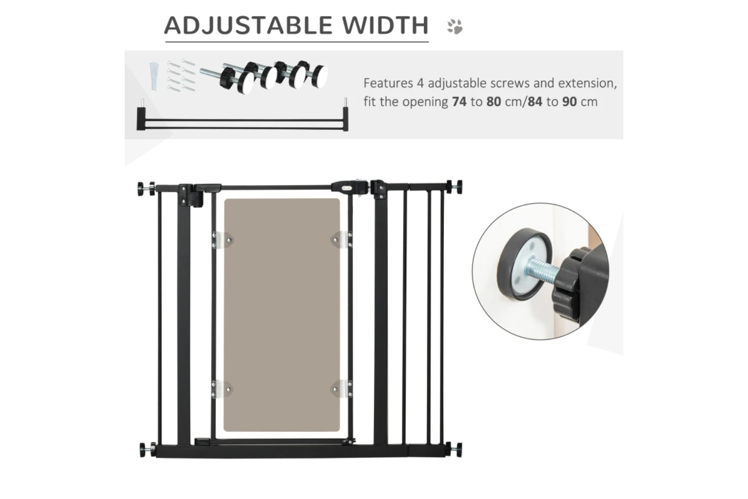 - Includes four adjusting screws, with an opening between 74-80 cm or 84-90 cm. Please measure your opening before purchasing