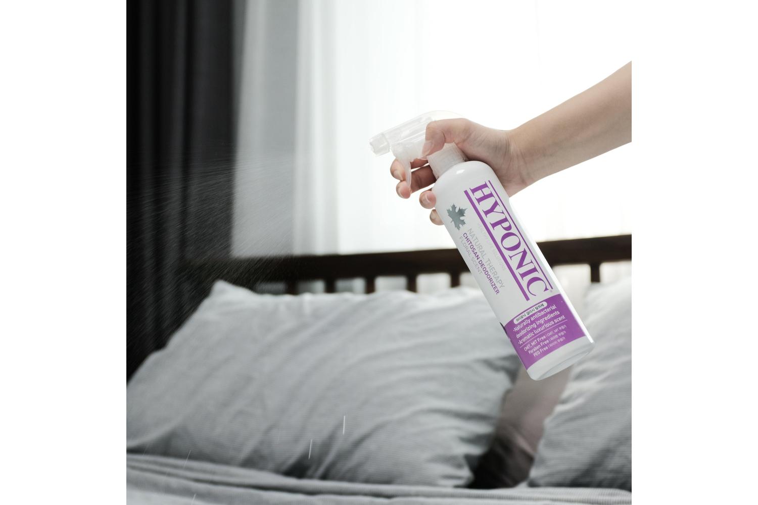 To use, simply spray in any space needing a calming whiff of freshness - indoor areas, washrooms, carpet, pet's bed, clothes or car seat. This HYPONIC Chitosan Deodorizer boasts a potent, fragrance-filled blast of refreshment throughout your space.