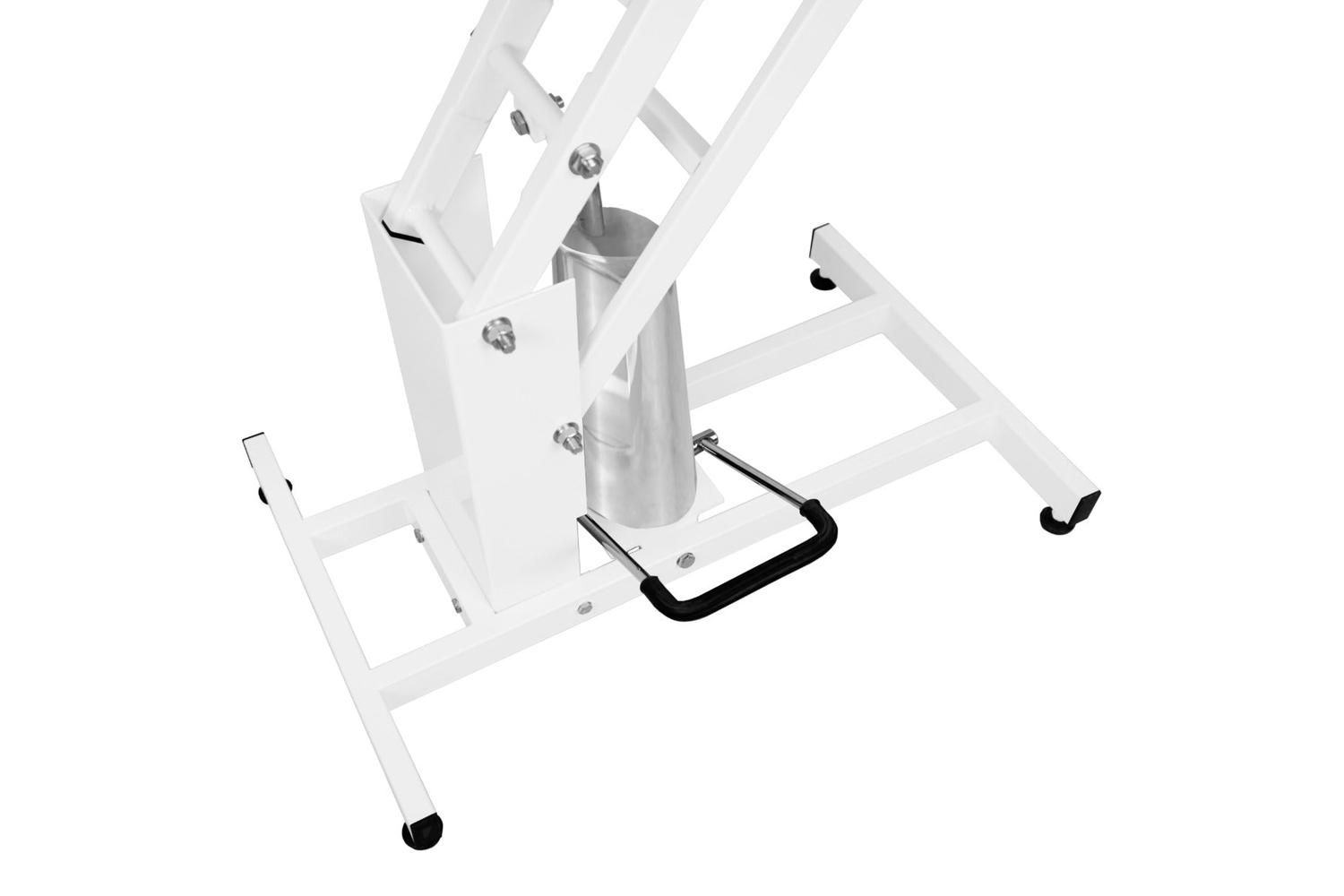 Built with an ultra-durable box steel frame and finished in a meticulous white paint, our hydraulic grooming table doesnt just enhance the visual appeal of your grooming station, it also adds a layer of longevity to the structure. Add to that, four adjustable feet contribute to unravelling stability by adapting to uneven floor surfaces, promoting a safer grooming environment.