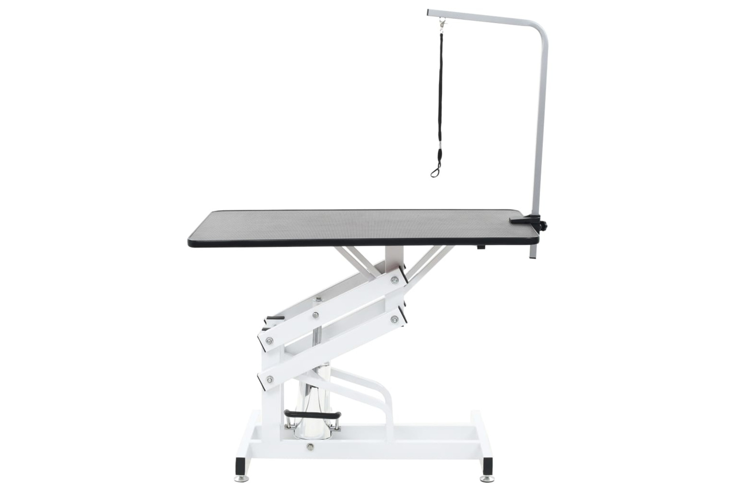 This hydraulic grooming table is perfect for home and mobile groomers, dog shows etc. It features a non-slip tabletop and a powder-coated iron frame with adjustable grooming arm and feet.