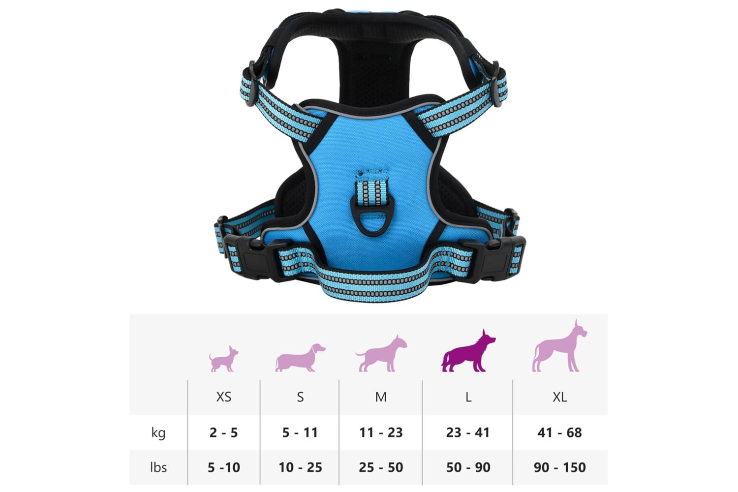 - Safe and comfortable: This dog harness is made of polyester and padded with a soft cushion to protect your dog's skin. Also, the breathable air mesh keeps your dog cool and comfy all day.