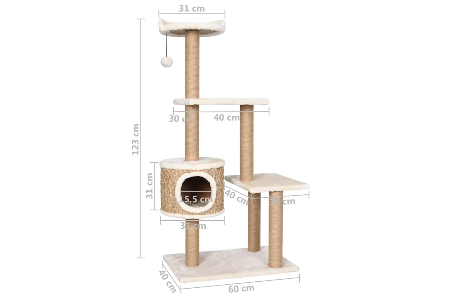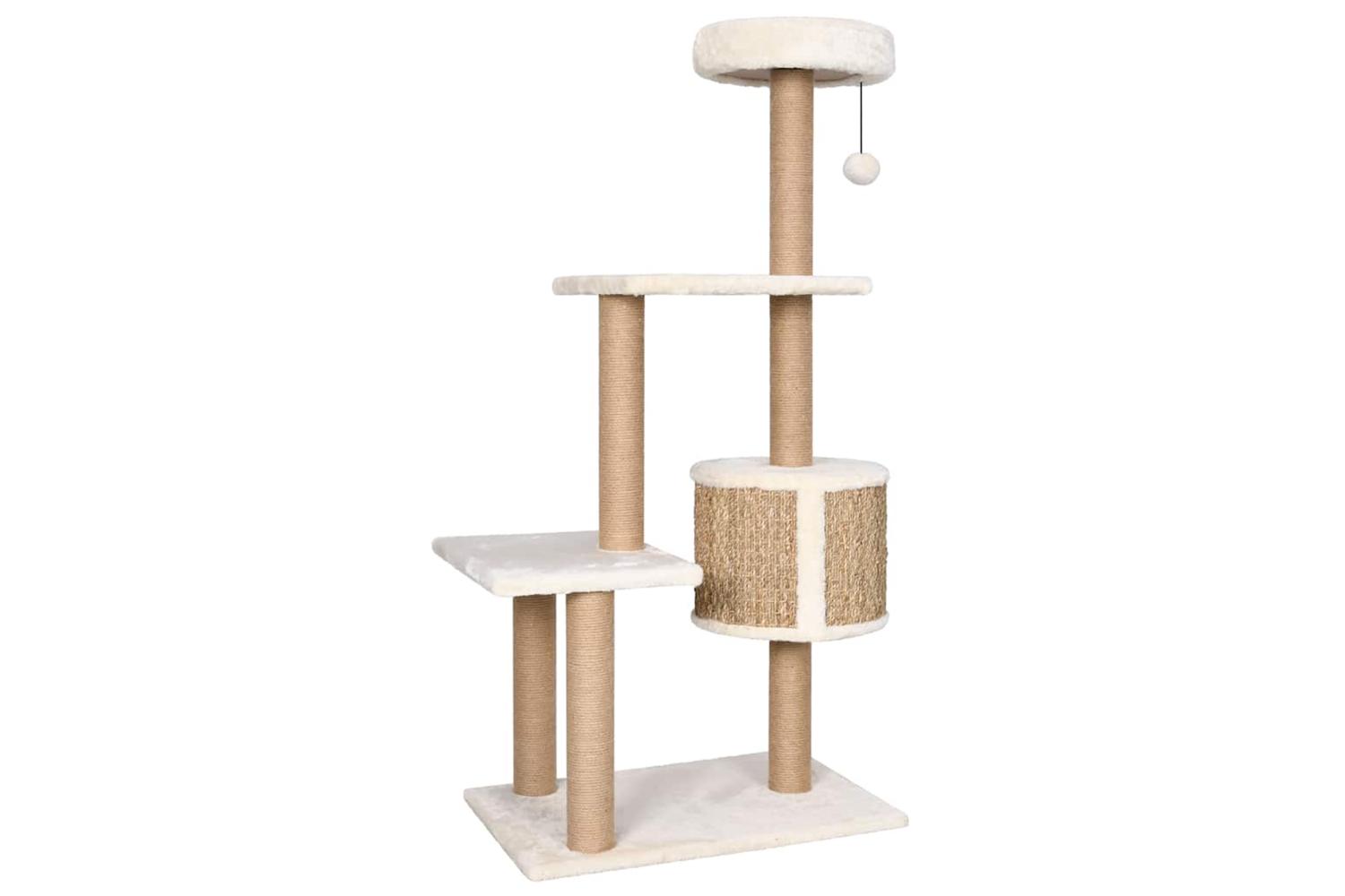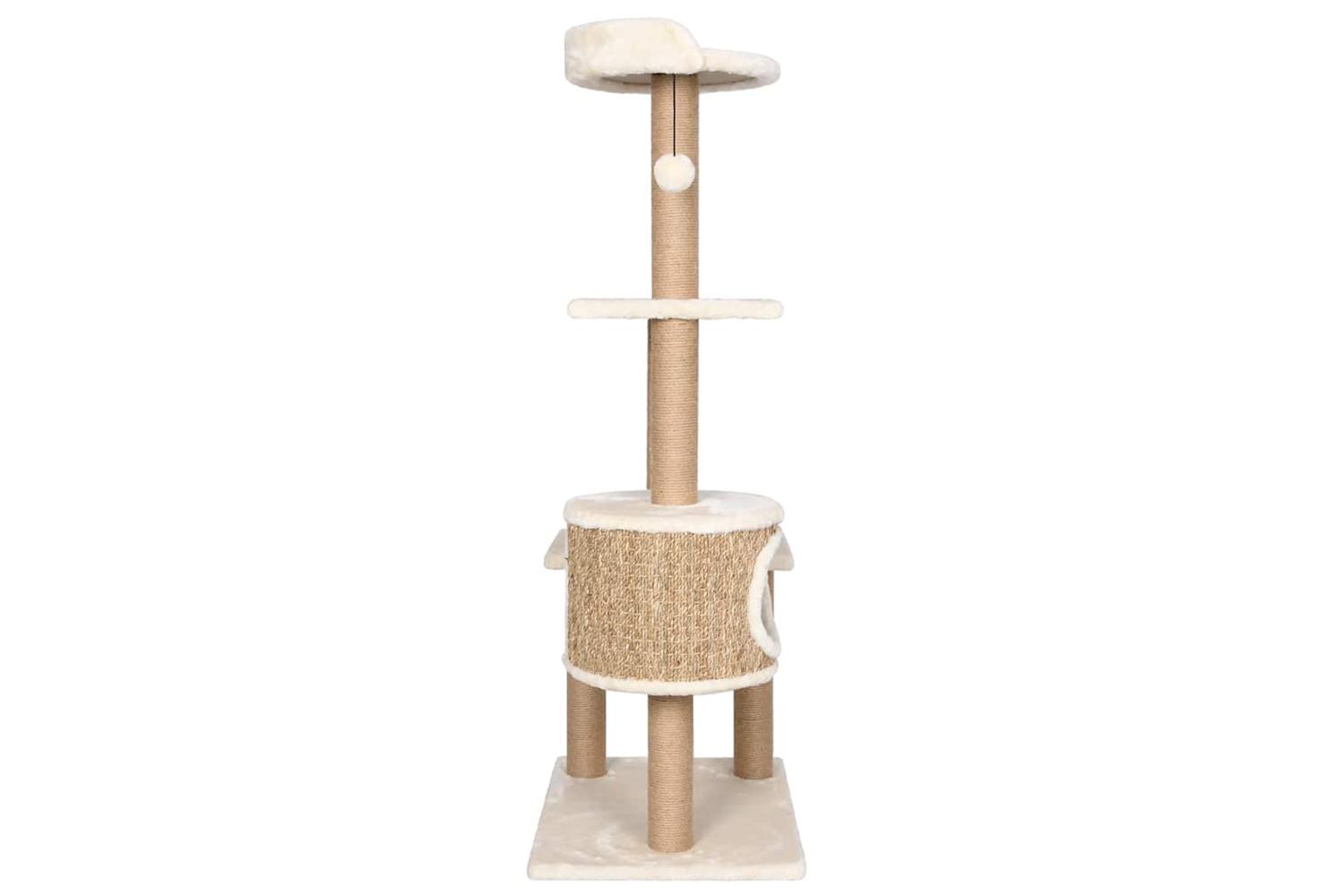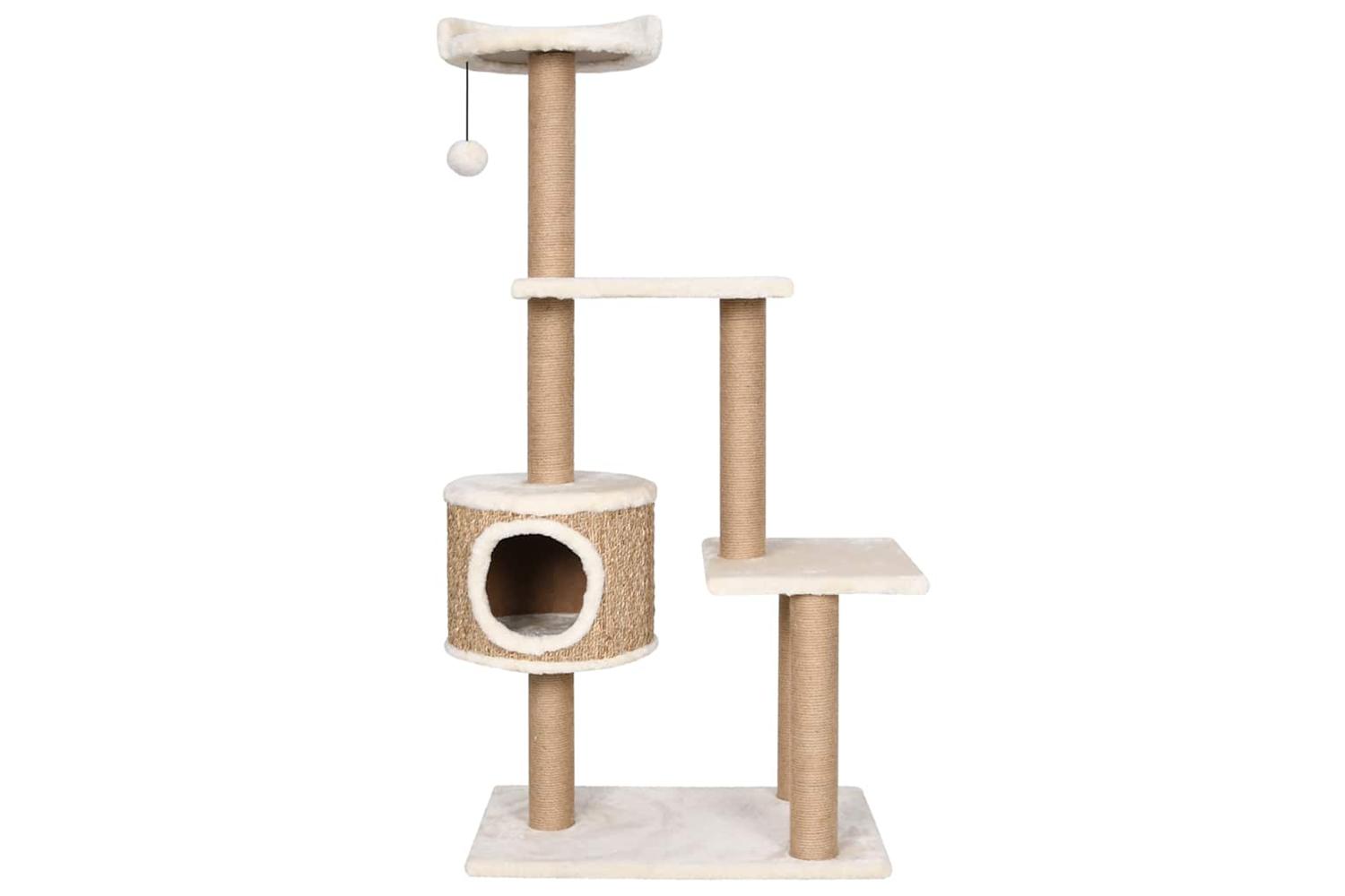 The tall cat tree includes multiple perches and a condo house so that your cats can scratch, perch, climb and also relax to their heart's content. The scratch poles are wrapped in seagrass, which is exceedingly comfortable for your feline friends to sharpen their claws. It has multiple perches, which provide a cosy place for your furry friends to relax or take a nap. Additionally, it includes a hanging ball for extra fun.