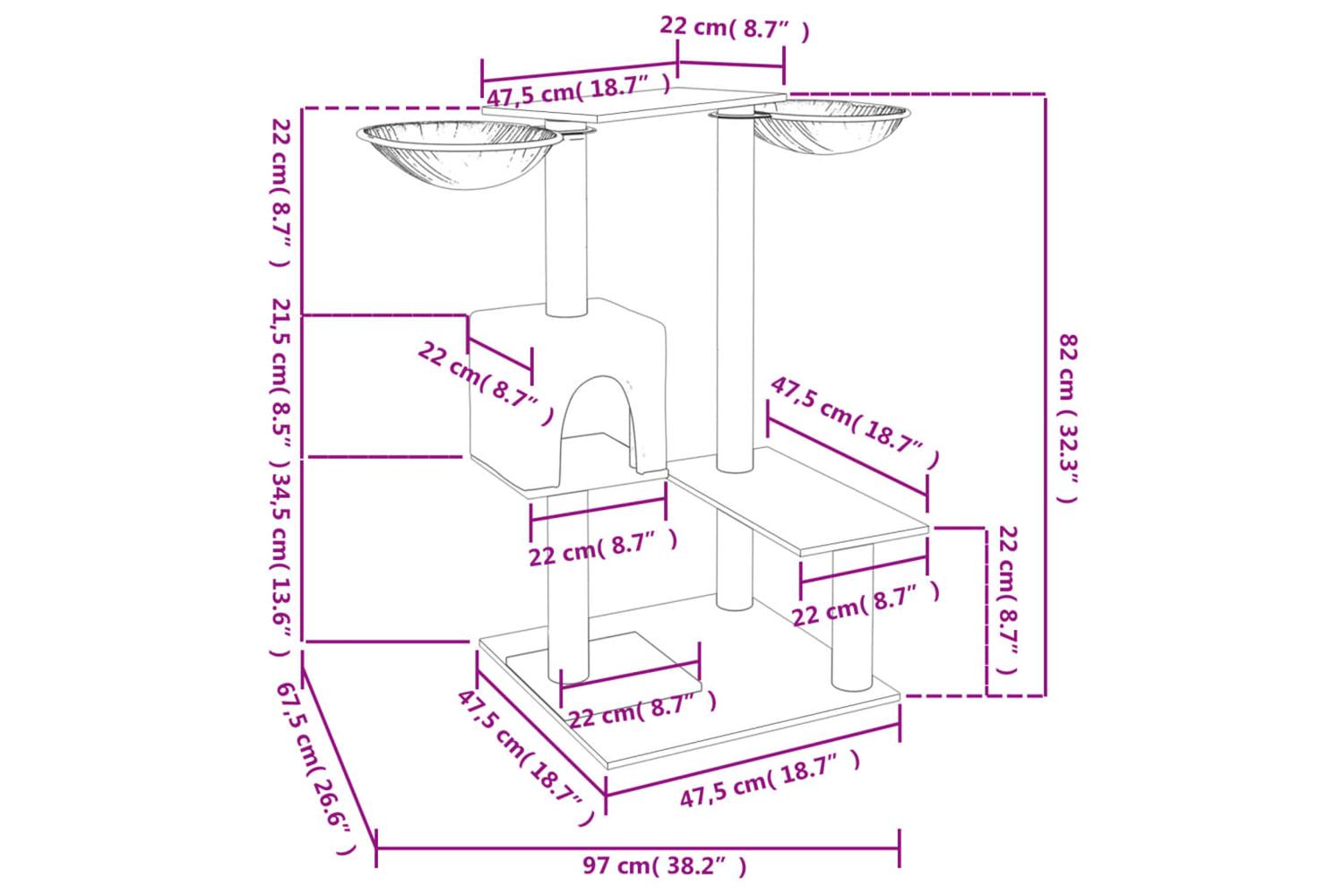 - Natural sisal posts: The resilient and strong natural sisal posts of the cat scratching tree are perfect for your beloved cats to satisfy their scratching instinct and prevent them from scratching your furniture.
