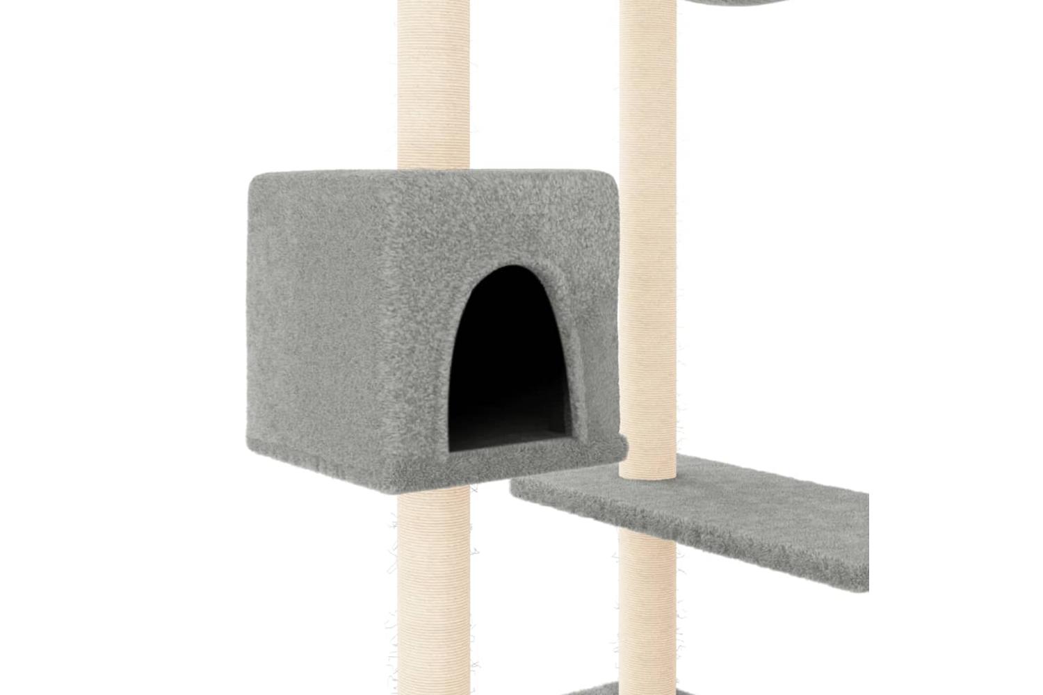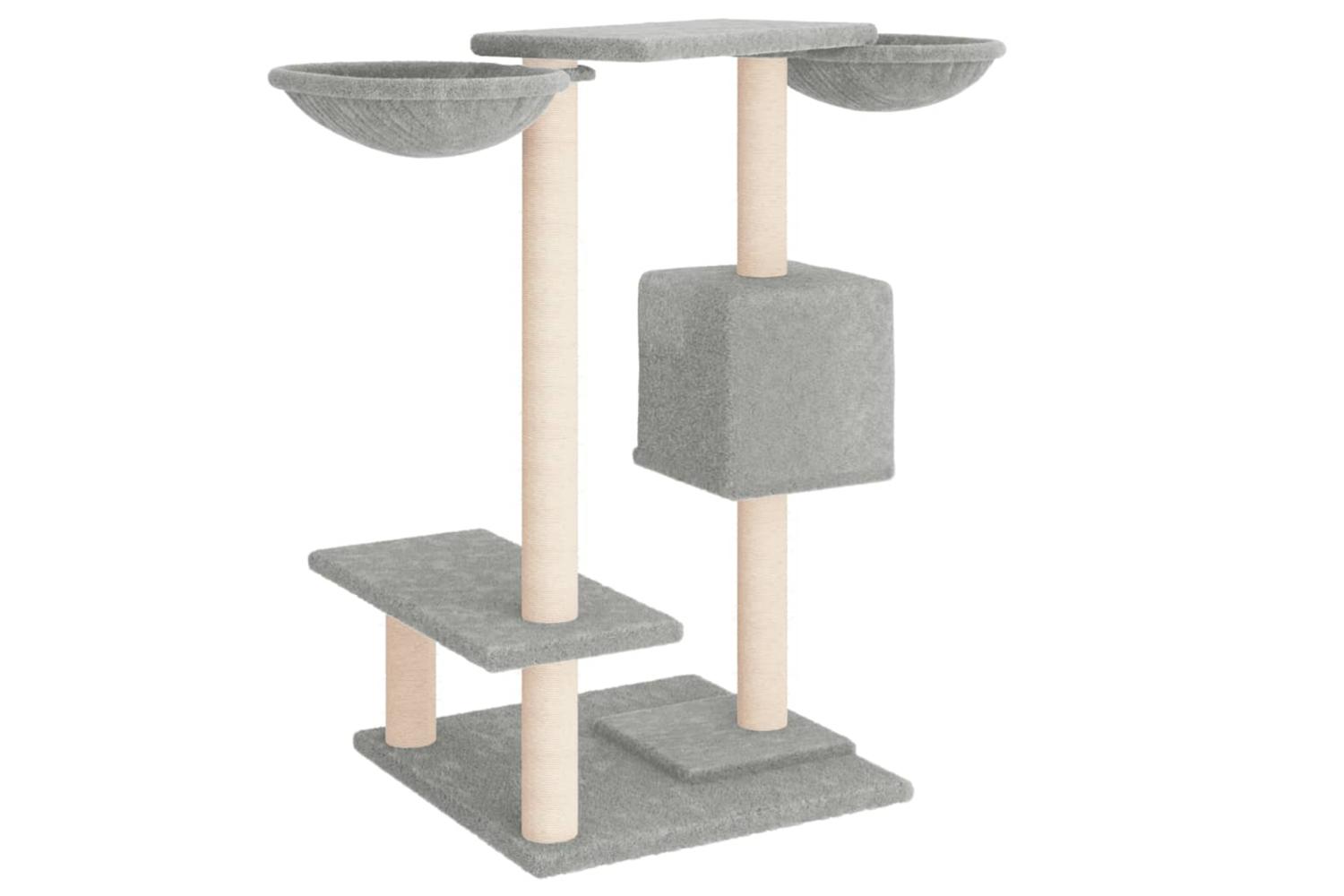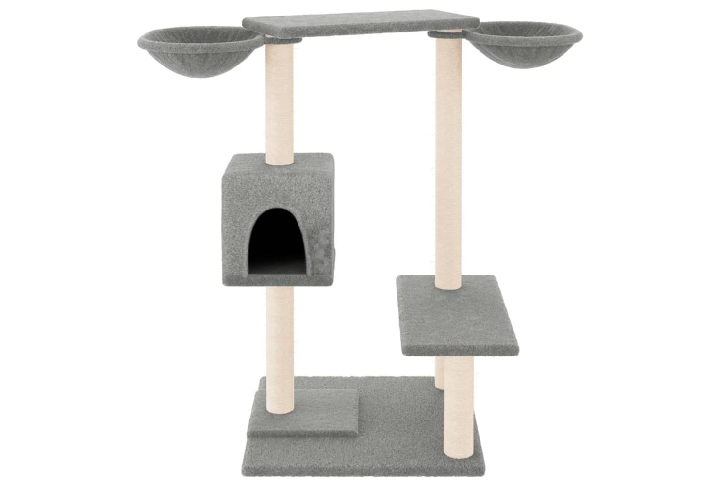 - Natural sisal posts: The resilient and strong natural sisal posts of the cat scratching tree are perfect for your beloved cats to satisfy their scratching instinct and prevent them from scratching your furniture.