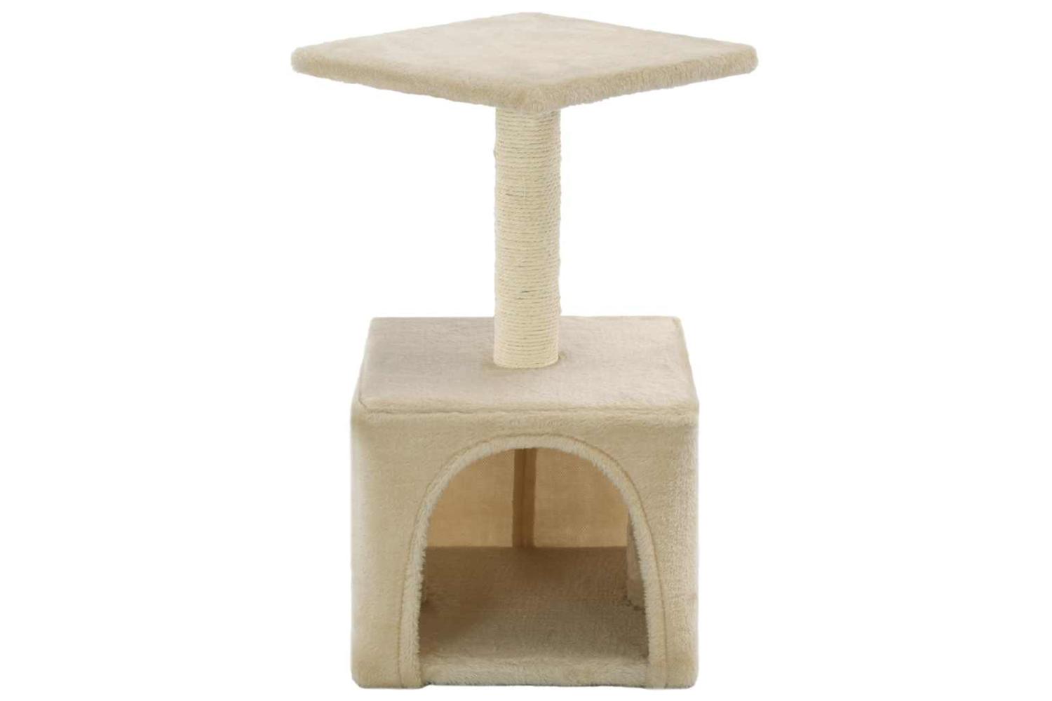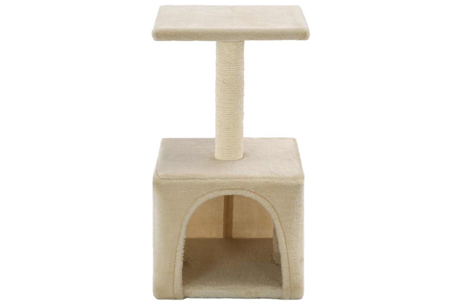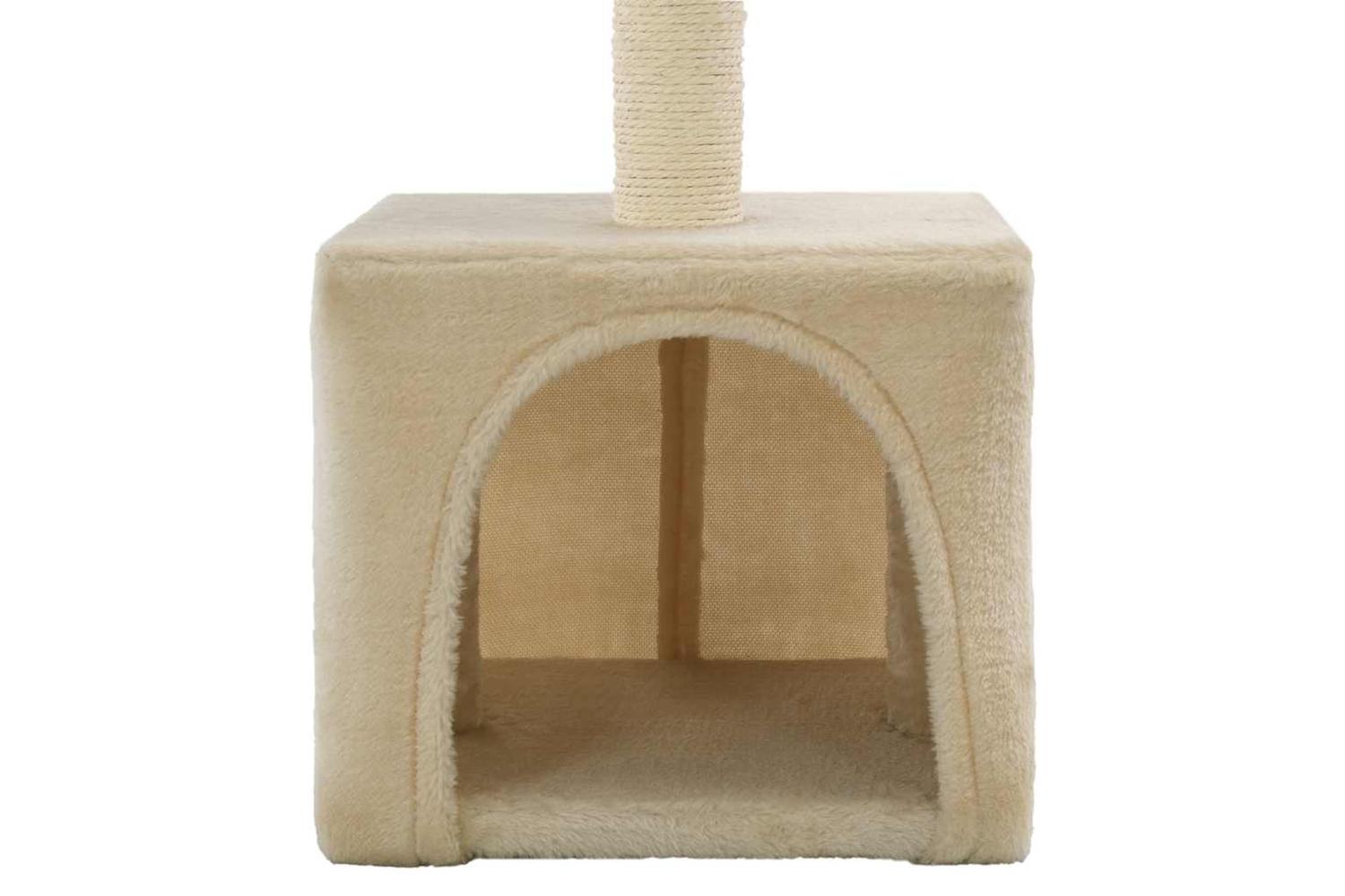 The plush, carpeted surface is highly comfortable, and the scratch pole is wrapped in sisal rope. It also has a comfortable house and a platform to keep your little friends entertained. The base is sturdy and stable. It is suitable for kittens.