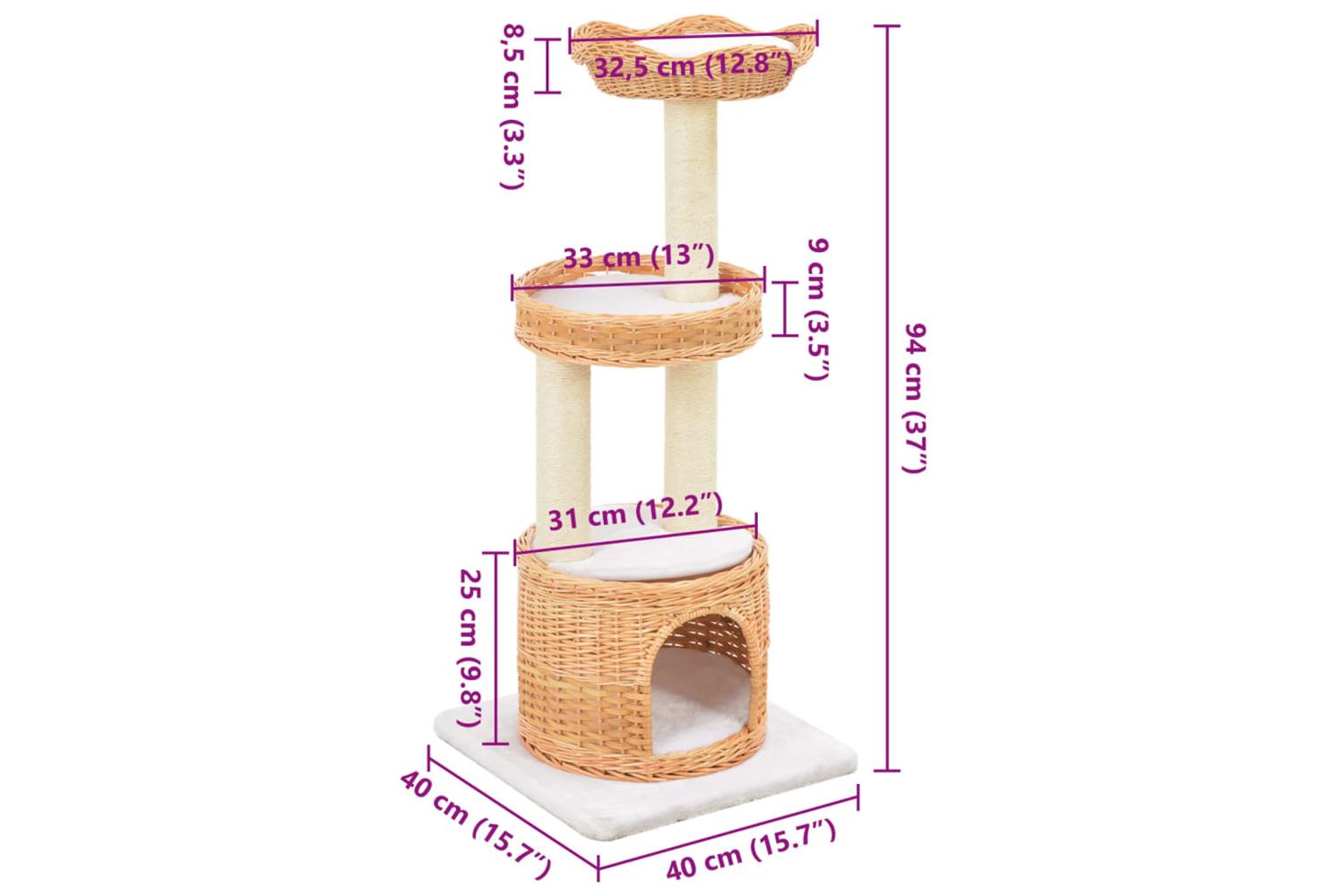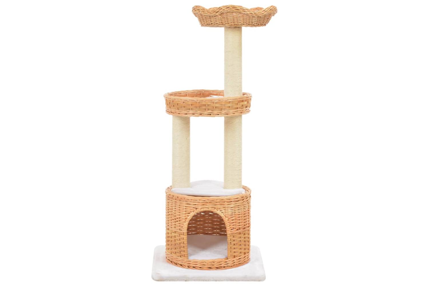 The cat scratching tree will also give your tiny friends the chance to stretch and exercise, especially in the cold winter months when they are stuck indoors. The scratch poles are wrapped in sisal rope, which is exceedingly comfortable and convenient for your feline friends to sharpen their claws. Additionally, our cat tree is designed with 2 cosy willow baskets and 1 house for your cat to have a nap or take a load off. Besides, it also boasts removable cushions for your cat to lie in cosily.