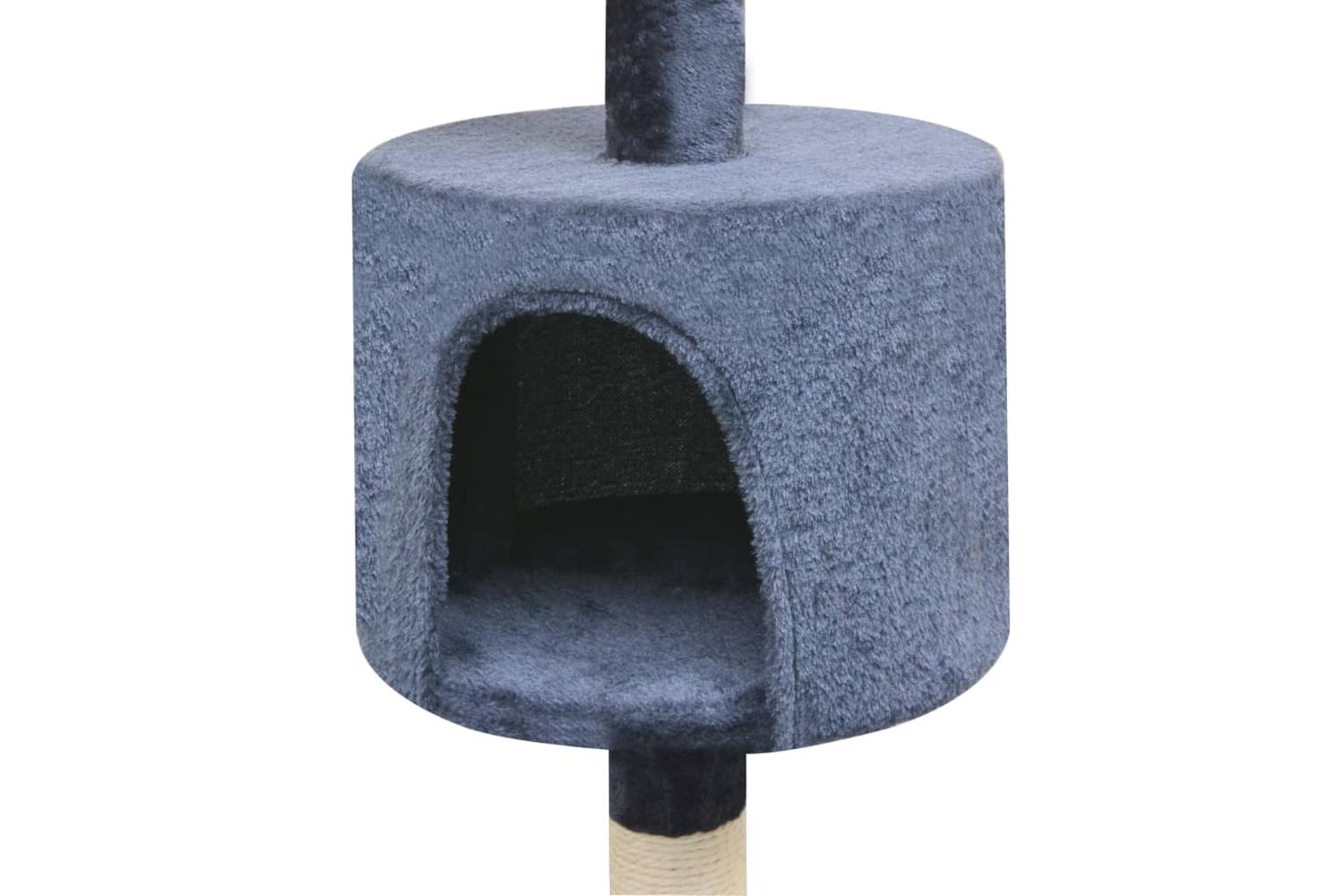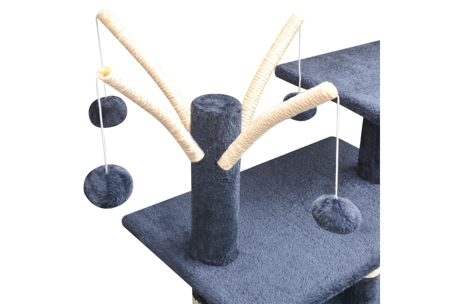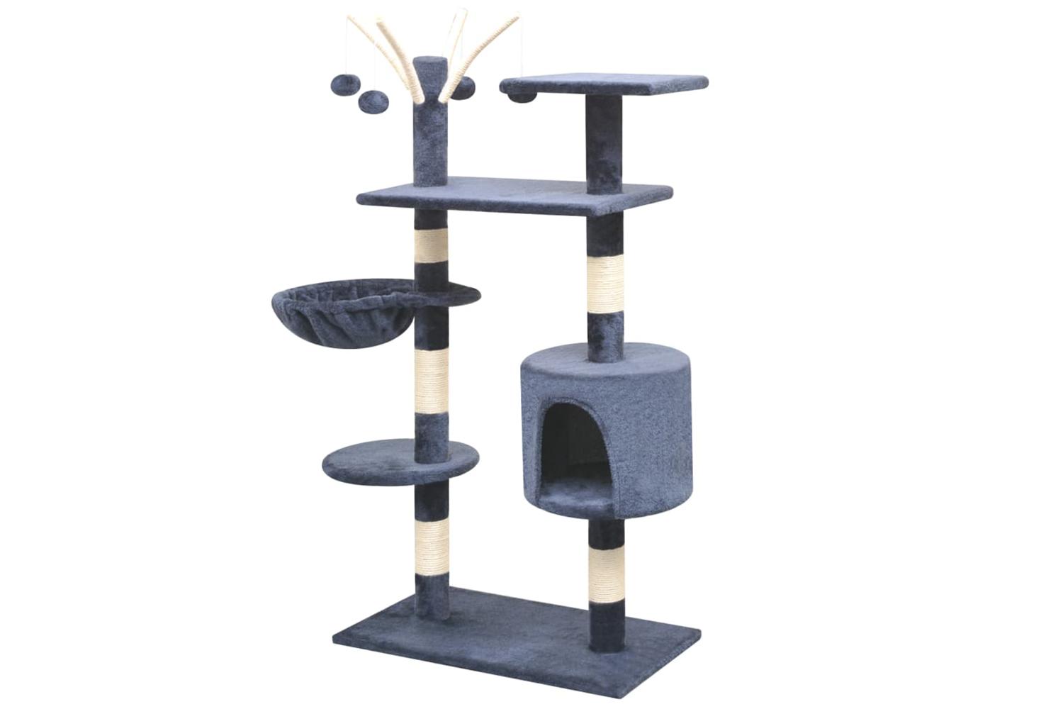 Your feline friends can sharpen their claws on the scratching posts wrapped in sisal rope, which provides a healthy outlet for their scratching instincts. They will also enjoy chasing after each other while jumping up and down this fun play centre. At the top of the cat tree, there are dangling toys that will engage your curious cats. When they've had enough playtime fun, your little friends will love resting on the upper platforms where they have a better view. They can also hide in the cosy house to take a nap, or take a load off on the comfy hammock.