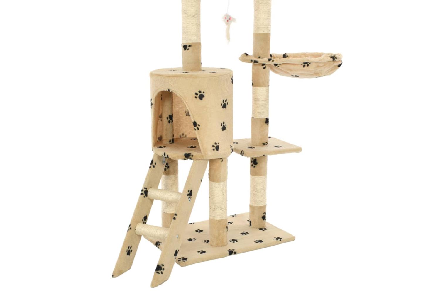 The plush, carpeted scratch poles are wrapped in sisal rope, which is highly comfortable and convenient for your feline friend to sharpen their claws. Your cat will enjoy chasing after each other while jumping up and down this fun play centre. Our cat tree is designed with a cosy house for your cat to take a nap or a load off. It also has 3 mouse toys, viewing platforms and relaxing areas to keep your little friend entertained. The base of this cat scratching tree is sturdy and stable.