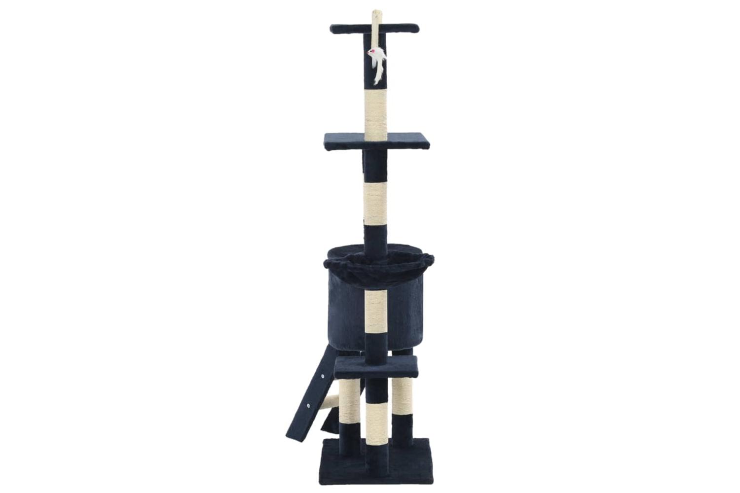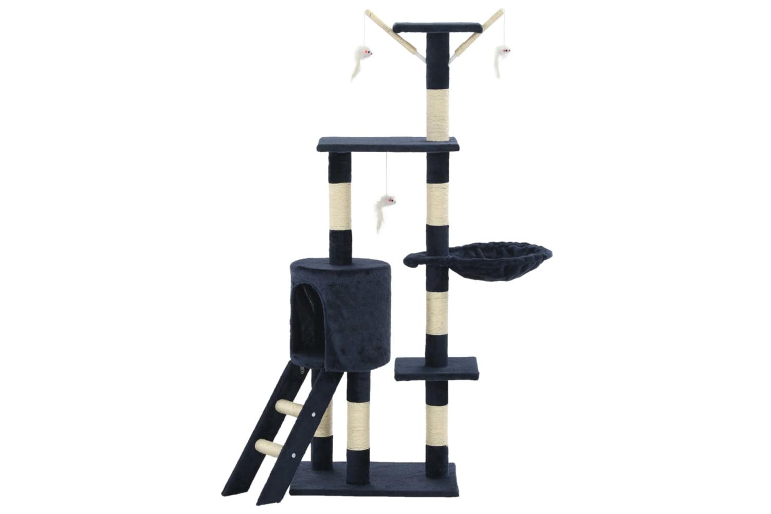 The plush, carpeted scratch poles are wrapped in sisal rope, which is highly comfortable and convenient for your feline friend to sharpen their claws. Your cat will enjoy chasing after each other while jumping up and down this fun play centre. Our cat tree is designed with a cosy house for your cat to take a nap or a load off. It also has 3 mouse toys, viewing platforms and relaxing areas to keep your little friend entertained. The base of this cat scratching tree is sturdy and stable.