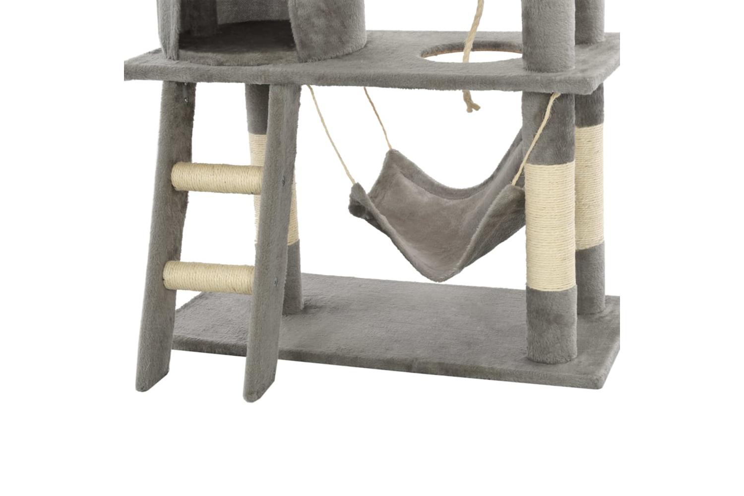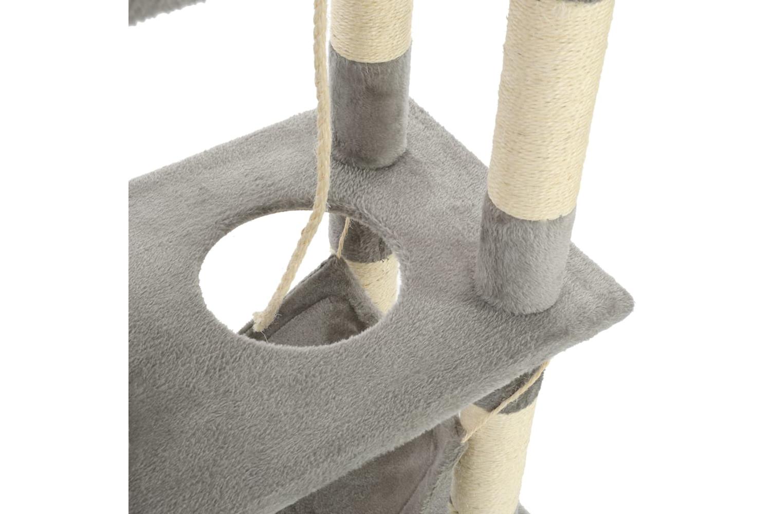 The plush, carpeted scratch poles are wrapped in sisal rope, which is highly comfortable and convenient for your feline friend to sharpen their claws. Your cat will enjoy chasing after each other while jumping up and down this fun play centre. Our cat tree is designed with a cosy house for your cat to take a nap or a load off. It also has a hammock, a ladder, a climbing rope, viewing platforms and relaxing areas to keep your little friend entertained. The base of this cat scratching tree is sturdy and stable.