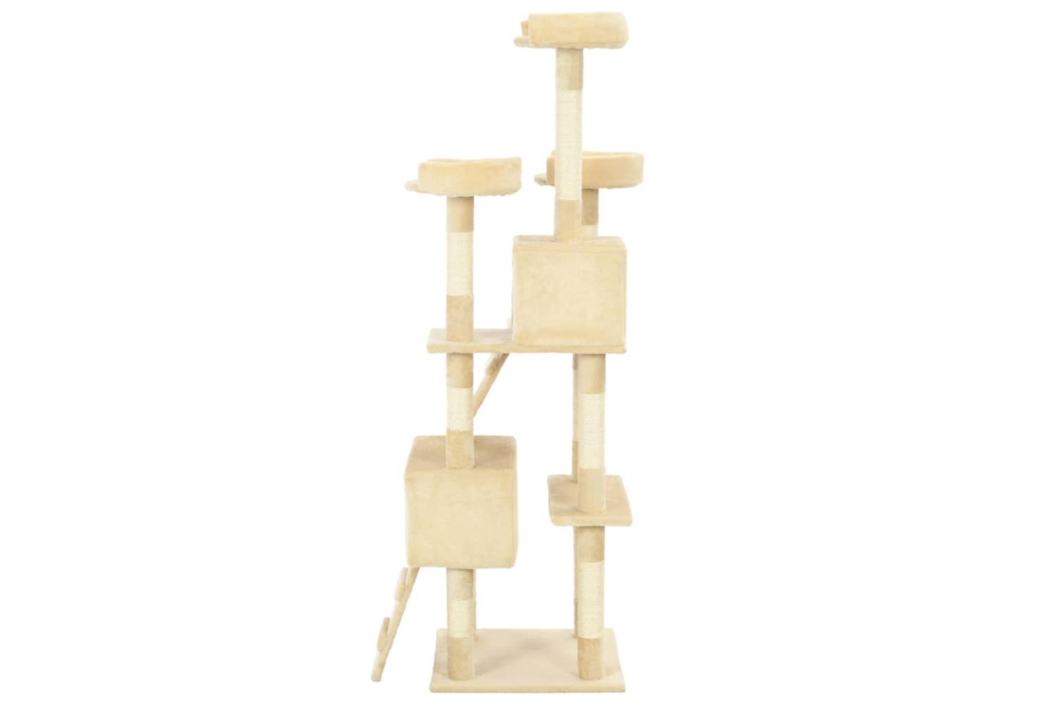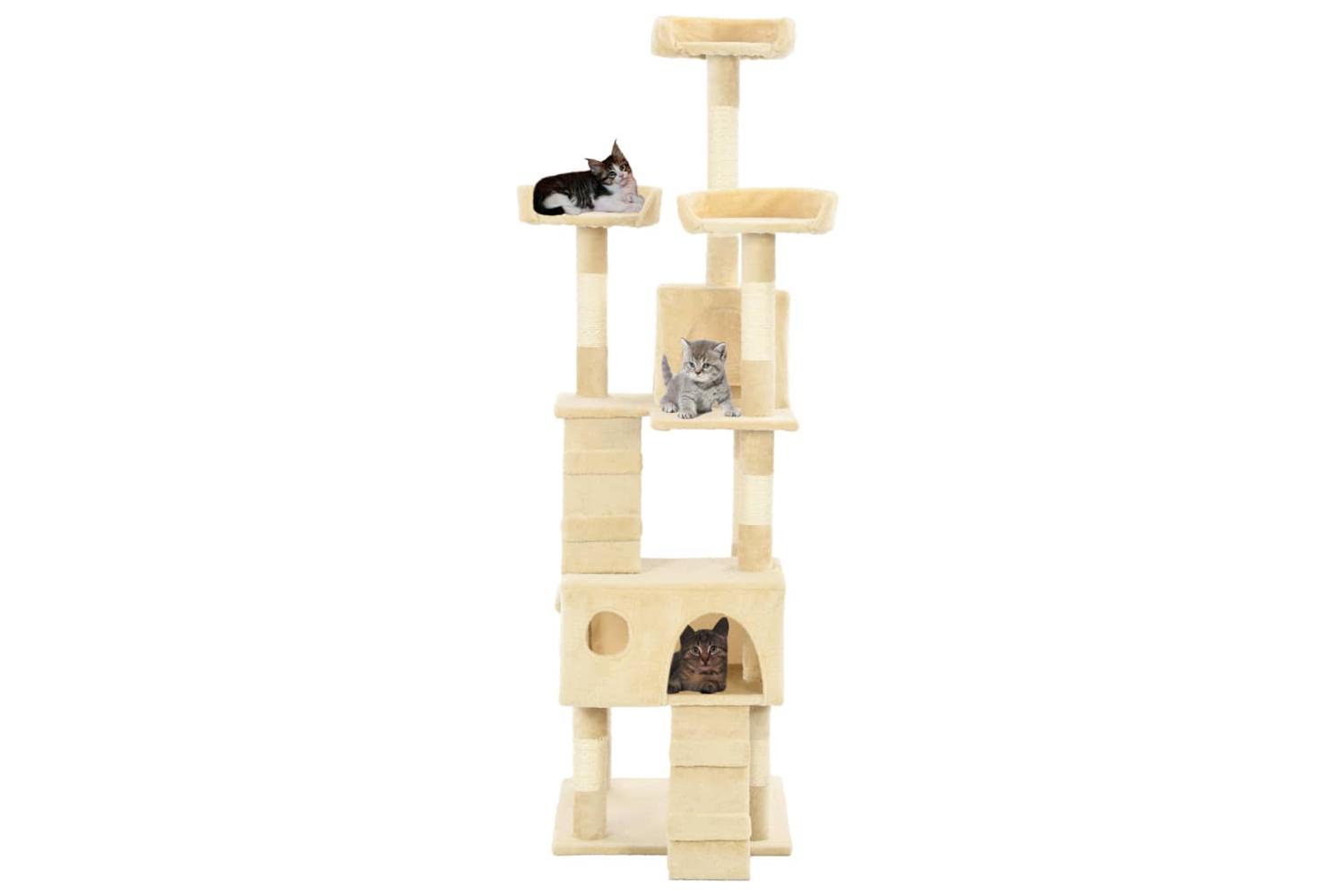 Your feline friends can sharpen their claws on the scratching posts wrapped in sisal rope, which provides a healthy outlet for their scratching instincts. They will also enjoy chasing after each other while jumping up and down this fun play centre. When they've had enough playtime fun, your little friends will love resting on the upper platforms where they have a better view. They can also hide in the cosy houses to take a nap. With all these fun features, this cat playhouse will become your furry friends' favourite hangout spot! The cat tree is easy to assemble.