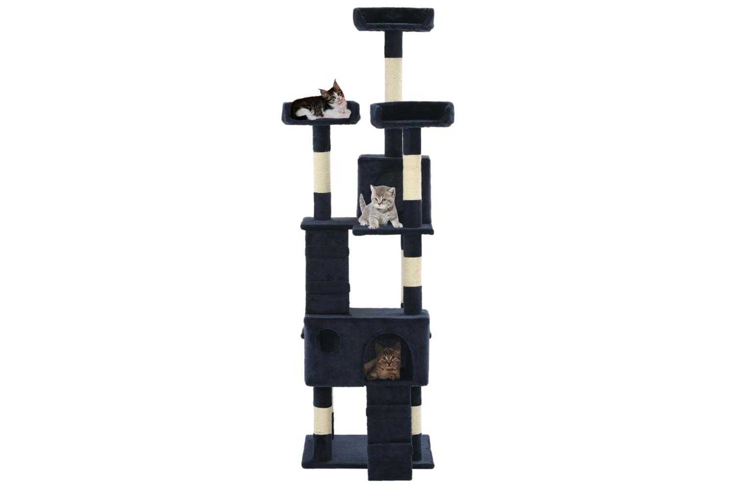 Give your feline friends a taste of luxury with our feature-packed cat tree! This multi-storey cats' play centre has a sturdy frame covered in soft, comfortable plush and will make the perfect retreat in which your cats can scratch, climb, perch, hide, and rest.