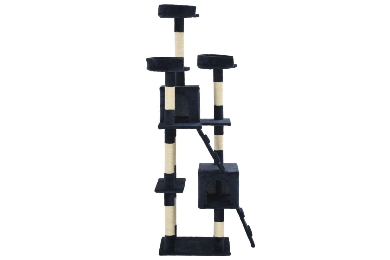 Your feline friends can sharpen their claws on the scratching posts wrapped in sisal rope, which provides a healthy outlet for their scratching instincts. They will also enjoy chasing after each other while jumping up and down this fun play centre. When they've had enough playtime fun, your little friends will love resting on the upper platforms where they have a better view. They can also hide in the cosy houses to take a nap. With all these fun features, this cat playhouse will become your furry friends' favourite hangout spot! The cat tree is easy to assemble.