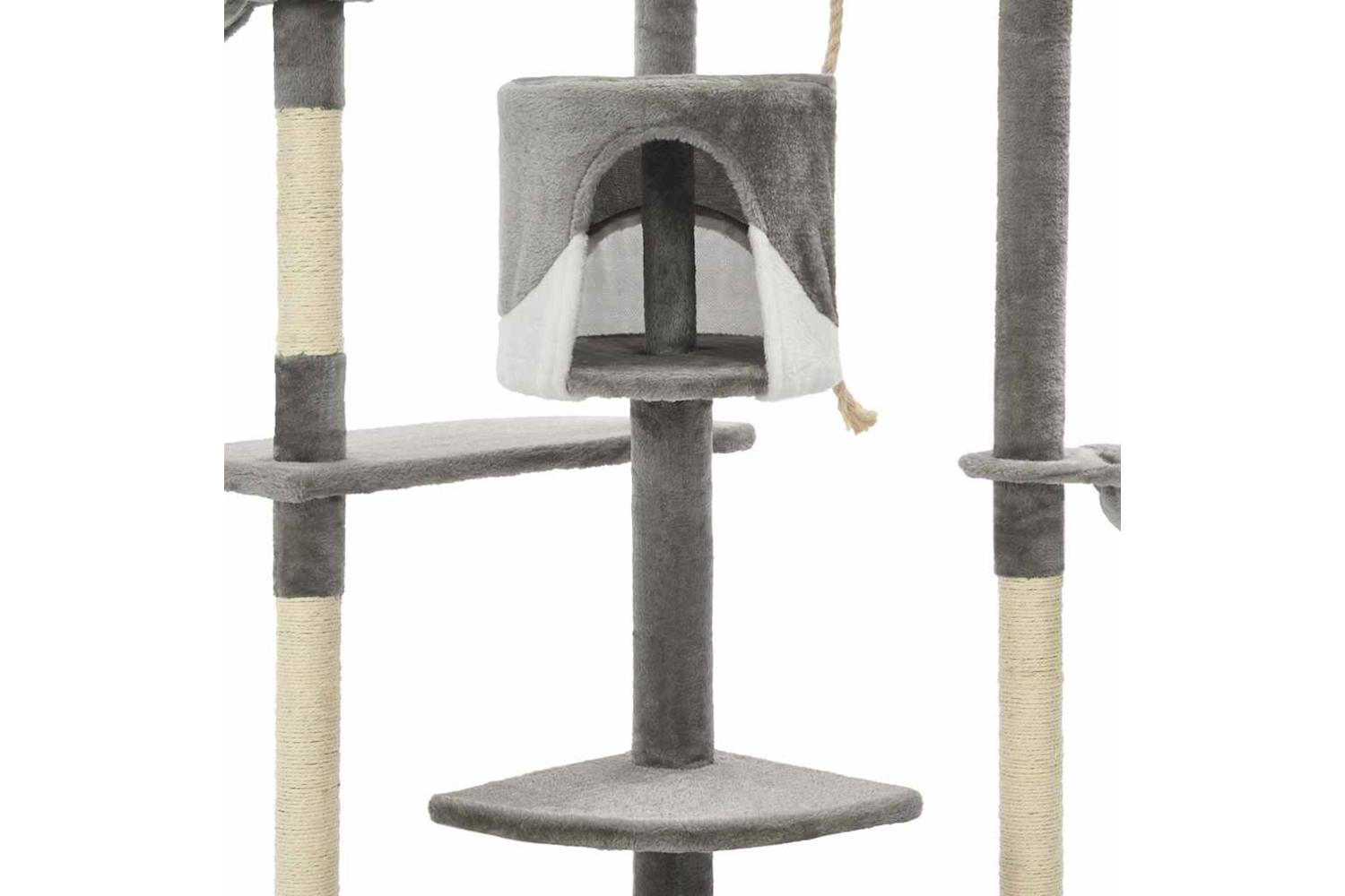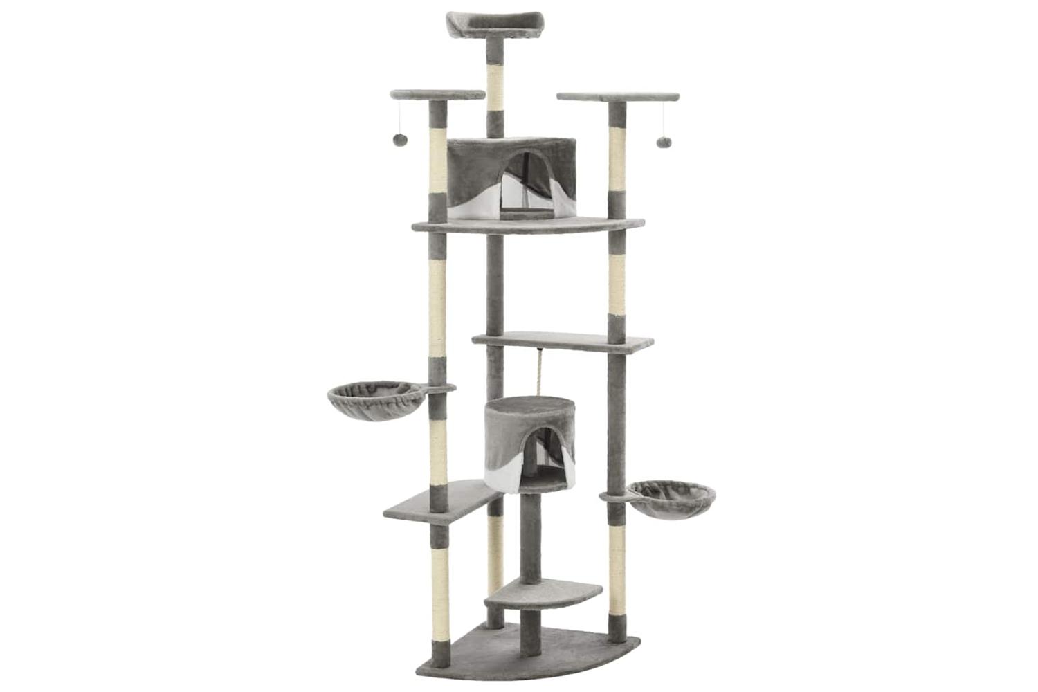 - With two houses, two dangling toys, two baskets, scratching posts and platforms