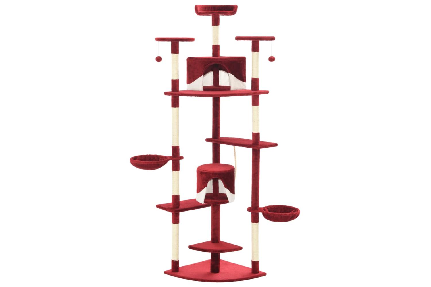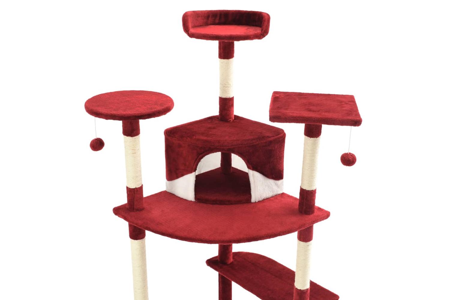 Your feline friends can sharpen their claws on the scratching posts wrapped in sisal rope, which provides a healthy outlet for their scratching instincts. They will also enjoy chasing after each other while jumping up and down this fun play centre. At the top of the cat tree, there are two dangling toys that will engage your curious cats. When they've had enough playtime fun, your little friends will love resting on the upper platforms where they have a better view. They can also hide in the cosy houses to take a nap, or take a load off on the comfy baskets.