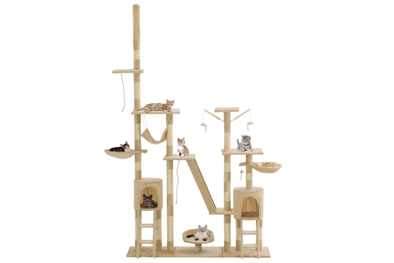 Your feline friends can sharpen their claws on the scratching posts wrapped in sisal rope, which provides a healthy outlet for their scratching instincts. They will also enjoy chasing after each other while jumping up and down this fun play centre. When they've had enough playtime fun, your little friends will love resting on the upper platforms where they have a better view. They can also hide in the cosy houses to take a nap, or take a load off on the comfy baskets or the hammock. With all these fun features, this cat playhouse will become your furry friends' favourite hangout spot! The cat tree is easy to assemble.