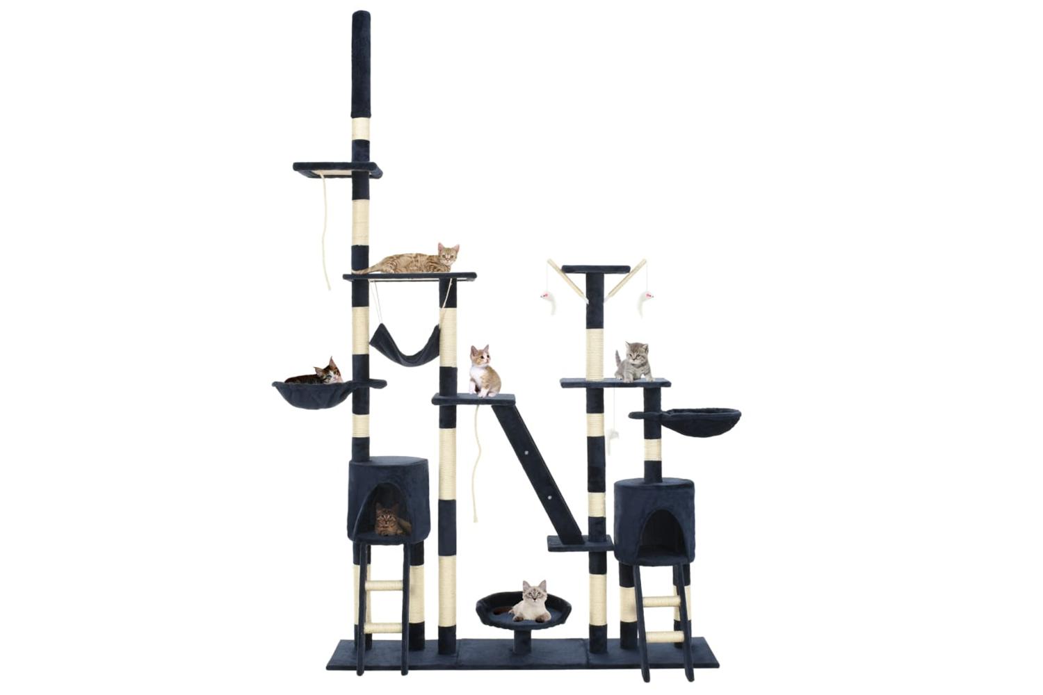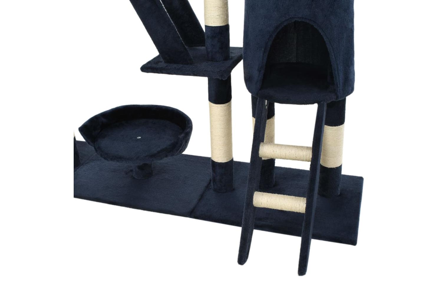 Your feline friends can sharpen their claws on the scratching posts wrapped in sisal rope, which provides a healthy outlet for their scratching instincts. They will also enjoy chasing after each other while jumping up and down this fun play centre. When they've had enough playtime fun, your little friends will love resting on the upper platforms where they have a better view. They can also hide in the cosy houses to take a nap, or take a load off on the comfy baskets or the hammock. With all these fun features, this cat playhouse will become your furry friends' favourite hangout spot! The cat tree is easy to assemble.