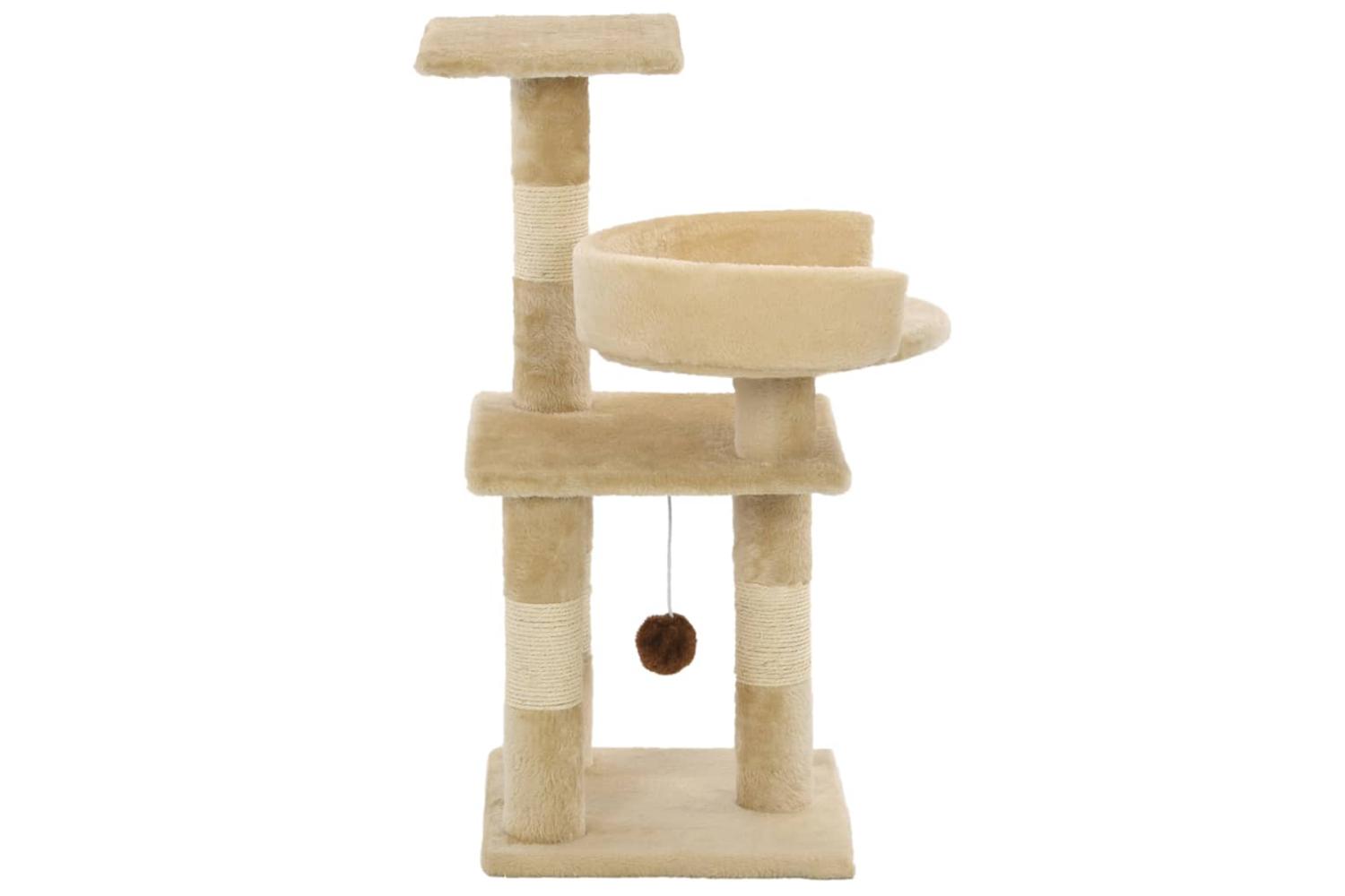 The cat scratching tree will also give your cats the chance to stretch and exercise, especially in the cold winter months when they are stuck indoors. The plush, carpeted surface is highly comfortable, and the scratch posts wrapped in sisal rope satisfy cats' clawing instinct. It has a hanging ball toy and viewing platforms and relaxing areas to keep your little friend entertained. The base is sturdy and stable. It is suitable for multiple cats. The cat tree is easy to assemble.
