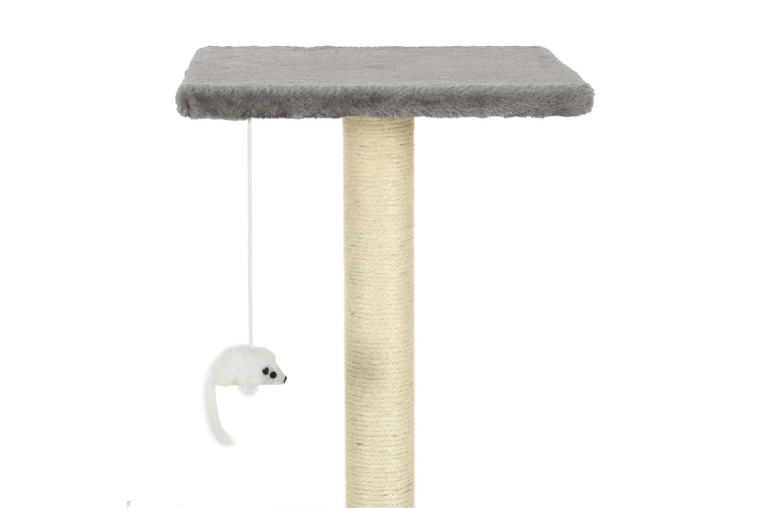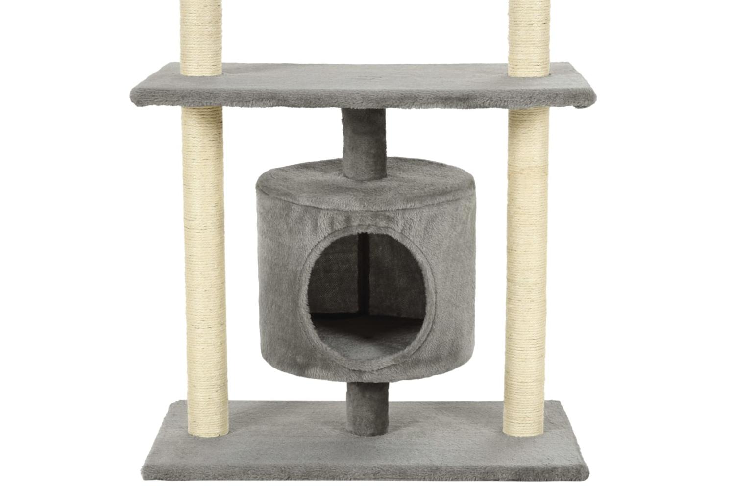 Your feline friends can sharpen their claws on the scratching posts wrapped in sisal rope, which provides a healthy outlet for their scratching instincts. They will also enjoy chasing after each other while jumping up and down this fun play centre. At the top of the cat tree, there is a dangling toy that will engage your curious cats. When they've had enough playtime fun, your little friends will love resting on the upper platforms where they have a better view. They can also hide in the cosy house to take a nap.