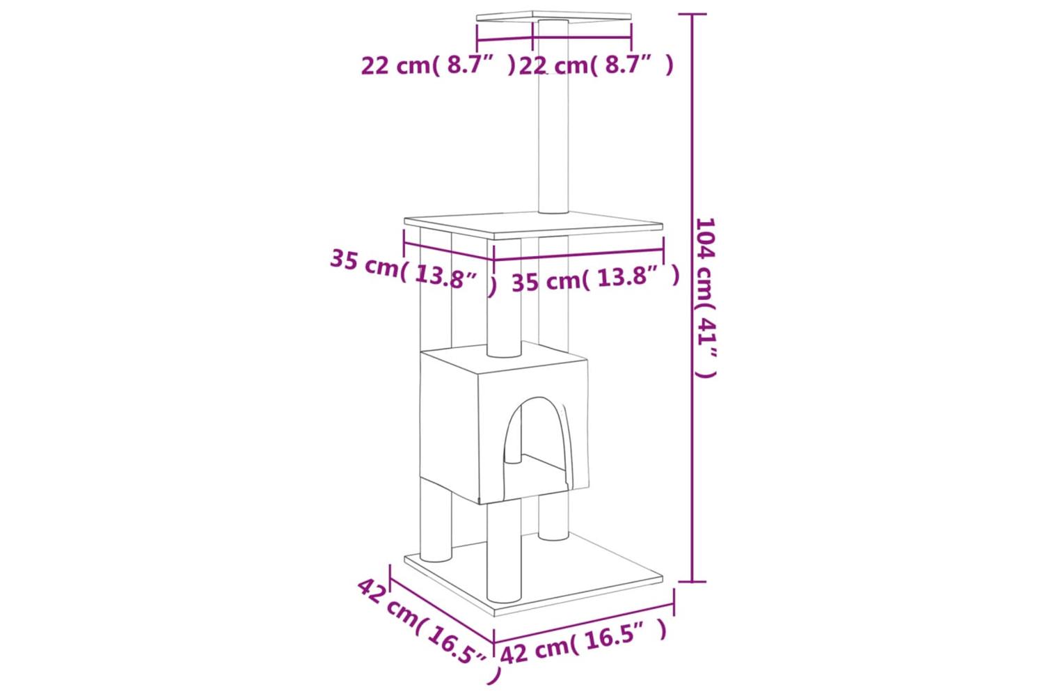 - Overall dimensions: 42 x 42 x 104 cm (L x W x H)