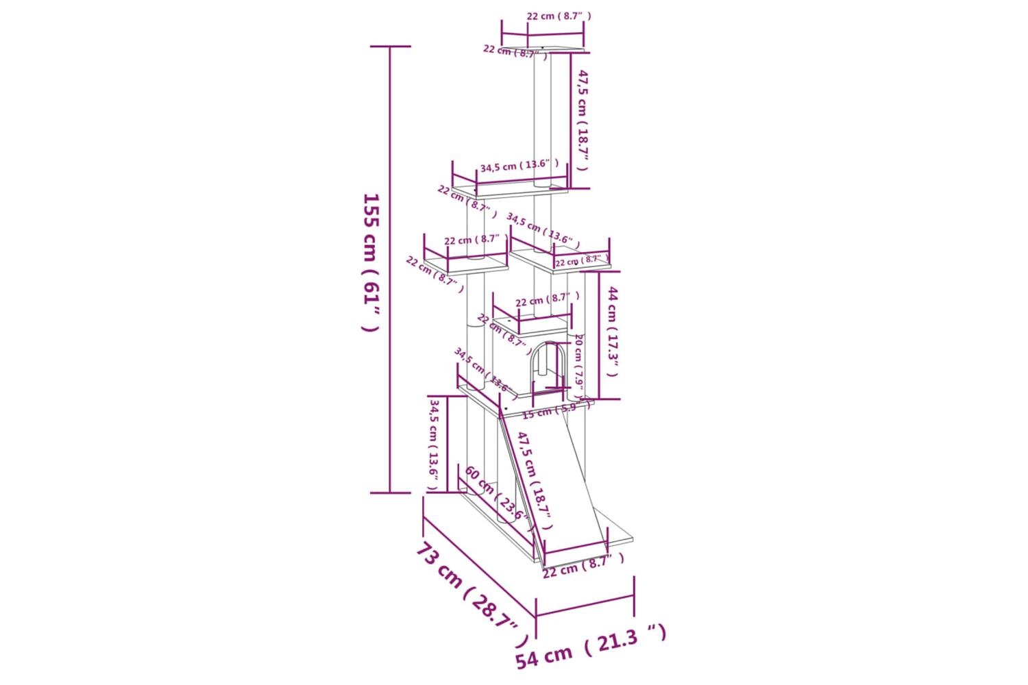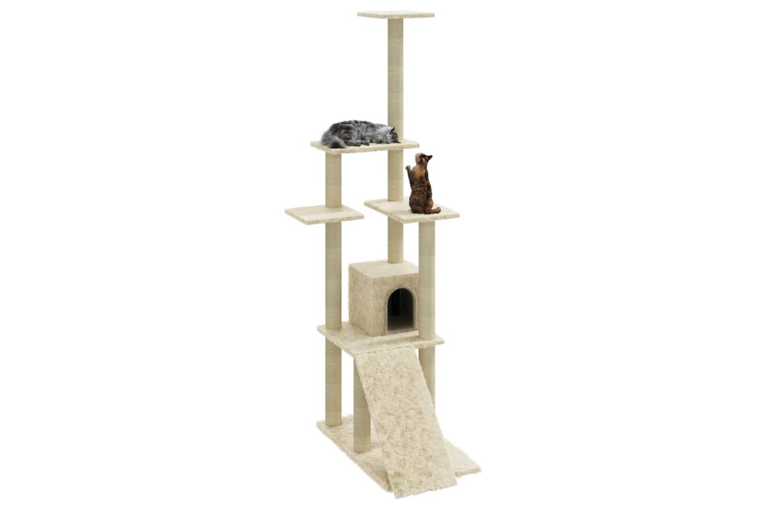 - With a ramp, a house, scratching posts and platforms