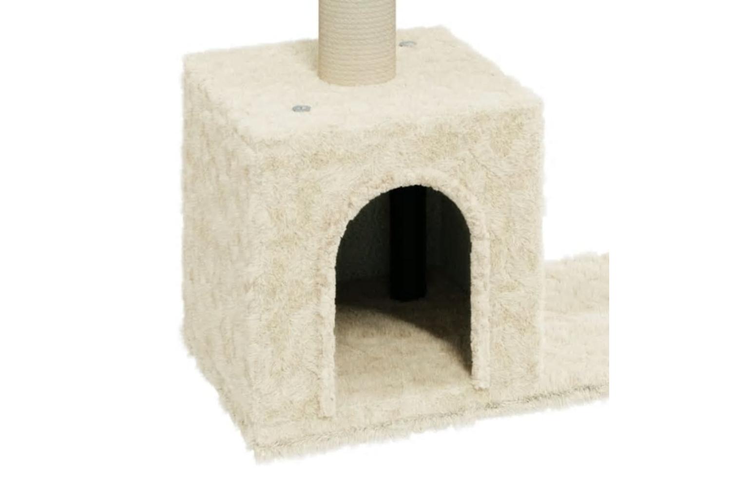 Your furry friends can sharpen their claws on the scratching posts wrapped in sisal rope, which provides a healthy outlet for their scratching instincts. Additionally, they will also rejoice in chasing after each other while jumping up and down this fun play centre. When they've enjoyed enough playtime, your little friends will love resting on the upper platforms where they have a better view. Besides, they can also hide in the cosy house to take a nap, or take a load off on the comfortable plush seat.