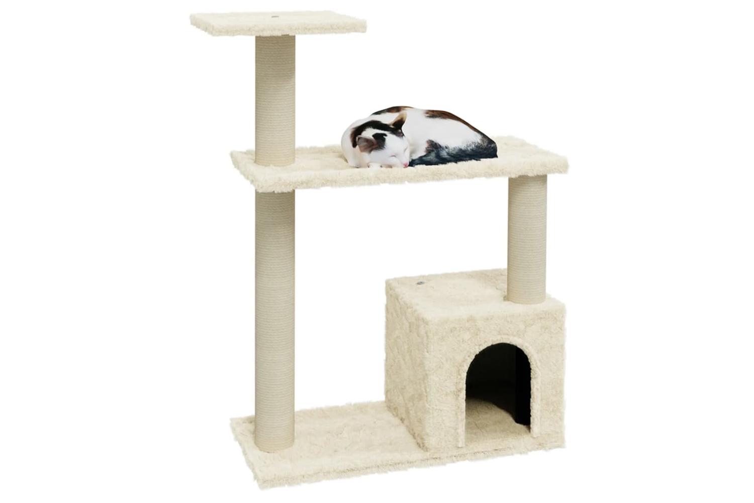 Your furry friends can sharpen their claws on the scratching posts wrapped in sisal rope, which provides a healthy outlet for their scratching instincts. Additionally, they will also rejoice in chasing after each other while jumping up and down this fun play centre. When they've enjoyed enough playtime, your little friends will love resting on the upper platforms where they have a better view. Besides, they can also hide in the cosy house to take a nap, or take a load off on the comfortable plush seat.