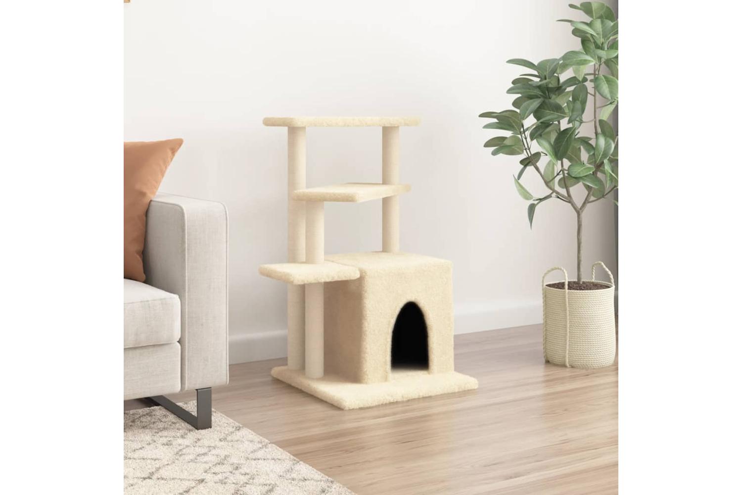 - Natural sisal posts: The resilient and strong natural sisal posts of the cat scratching tree are perfect for your beloved cats to satisfy their scratching instinct and prevent them from scratching your furniture.