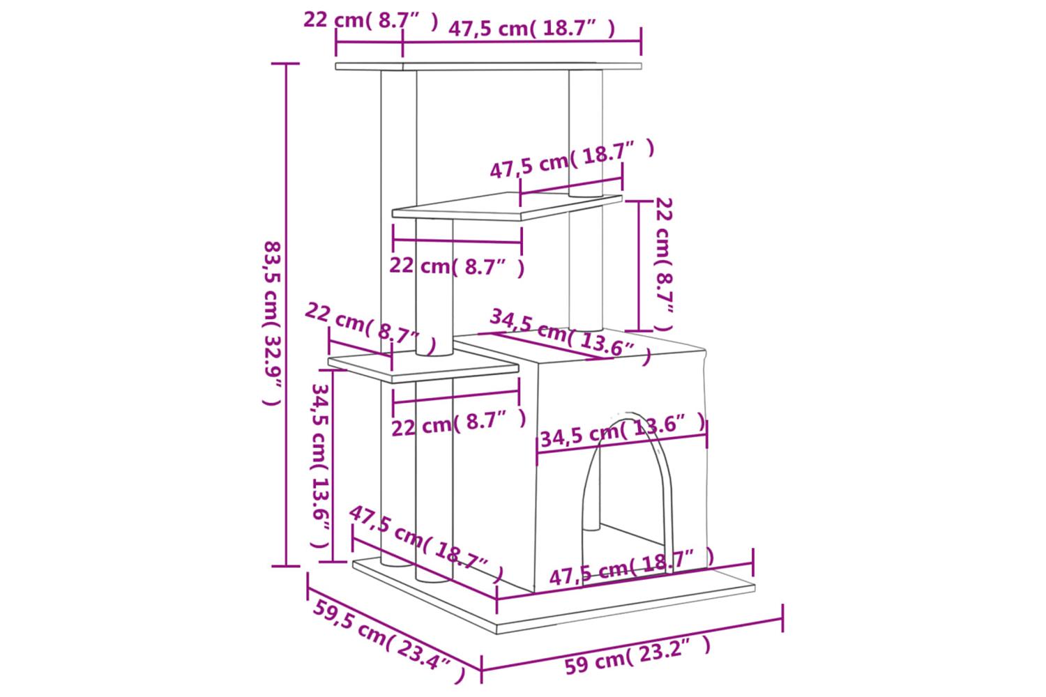 - Dimensions: 59.5 x 59 x 83.5 cm (L x W x H)