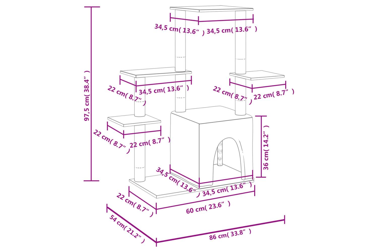- Natural sisal posts: The resilient and strong natural sisal posts of the cat scratching tree are perfect for your beloved cats to satisfy their scratching instinct and prevent them from scratching your furniture.