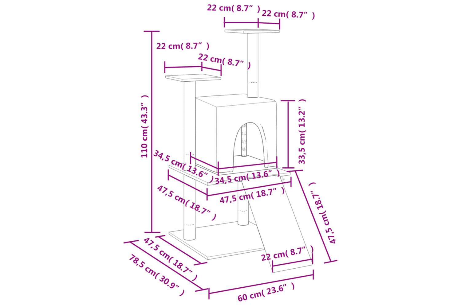 Cat Tree With Sisal Scratching Posts Dark Grey 110 Cm