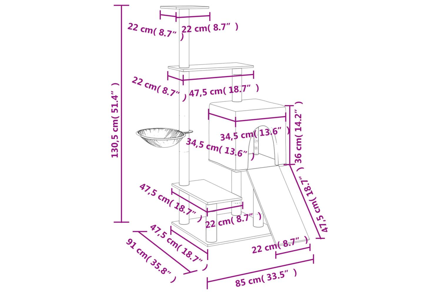 - Natural sisal posts: The resilient and strong natural sisal posts of the cat scratching tree are perfect for your beloved cats to satisfy their scratching instinct and prevent them from scratching your furniture.