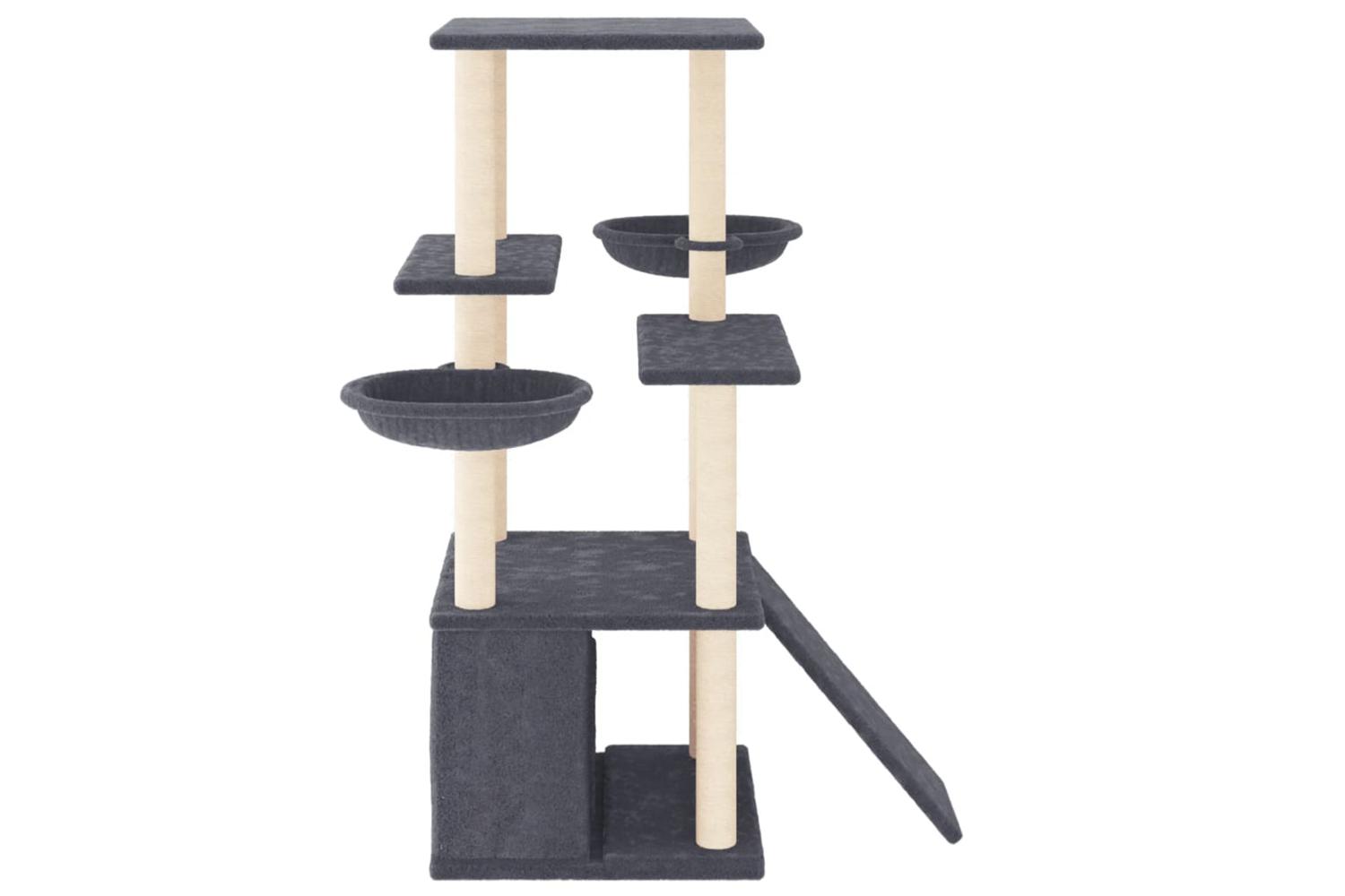 - Natural sisal posts: The resilient and strong natural sisal posts of the cat scratching tree are perfect for your beloved cats to satisfy their scratching instinct and prevent them from scratching your furniture.