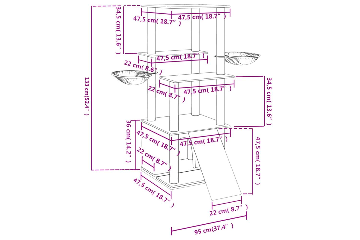 - Dimensions: 95 x 47.5 x 133 cm (L x W x H)