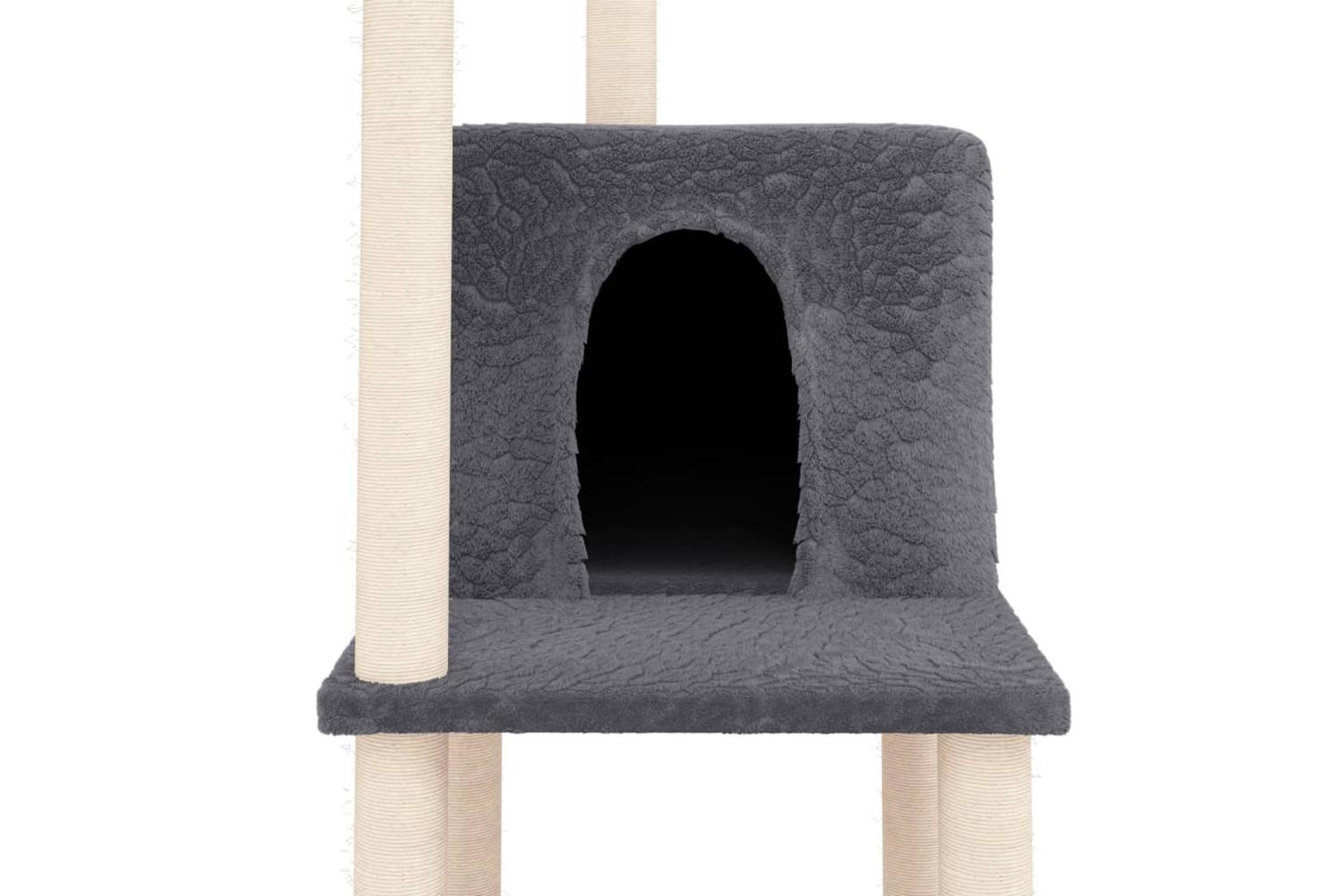 - Natural sisal posts: The resilient and strong natural sisal posts of the cat scratching tree are perfect for your beloved cats to satisfy their scratching instinct and prevent them from scratching your furniture.