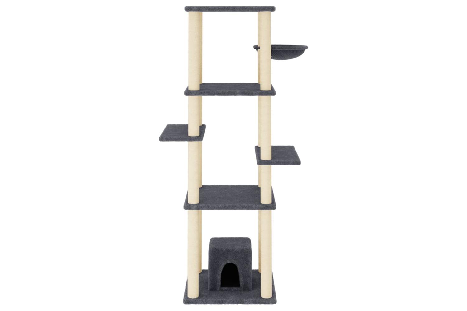 - Natural sisal posts: The resilient and strong natural sisal posts of the cat scratching tree are perfect for your beloved cats to satisfy their scratching instinct and prevent them from scratching your furniture.