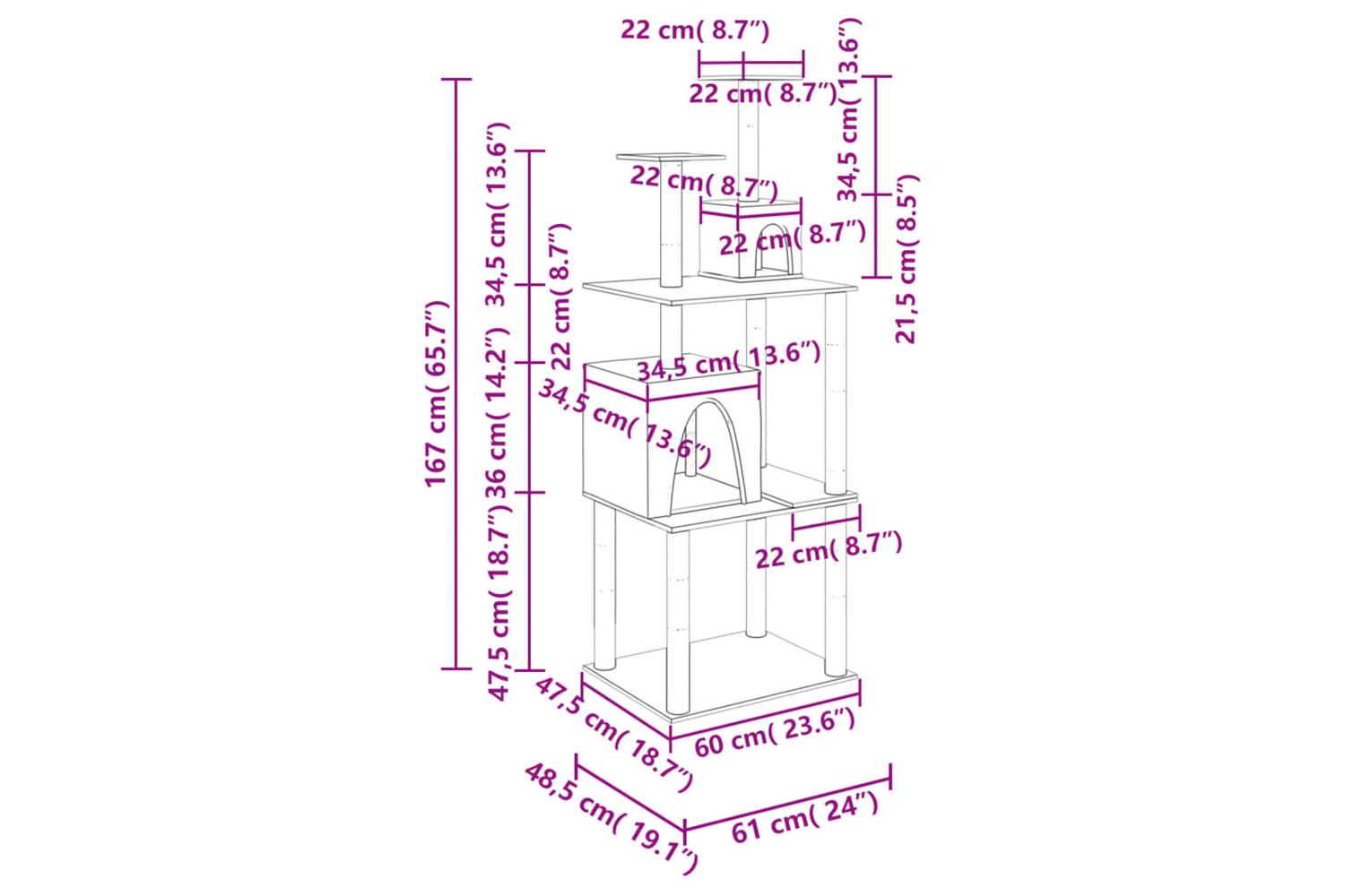- Natural sisal posts: The resilient and strong natural sisal posts of the cat scratching tree are perfect for your beloved cats to satisfy their scratching instinct and prevent them from scratching your furniture.