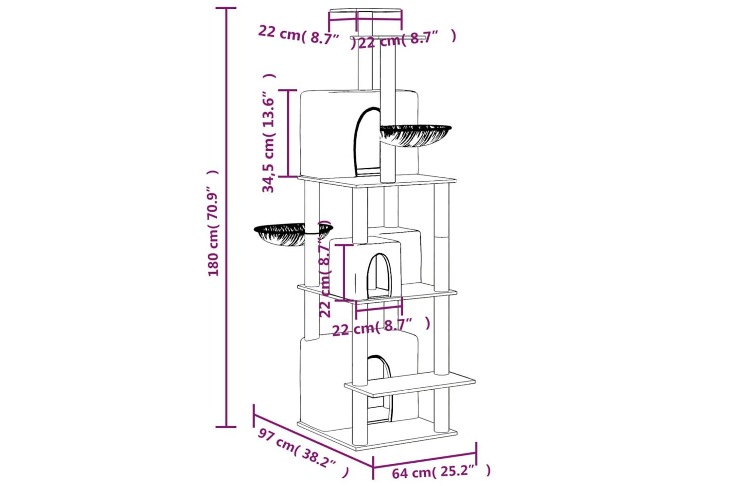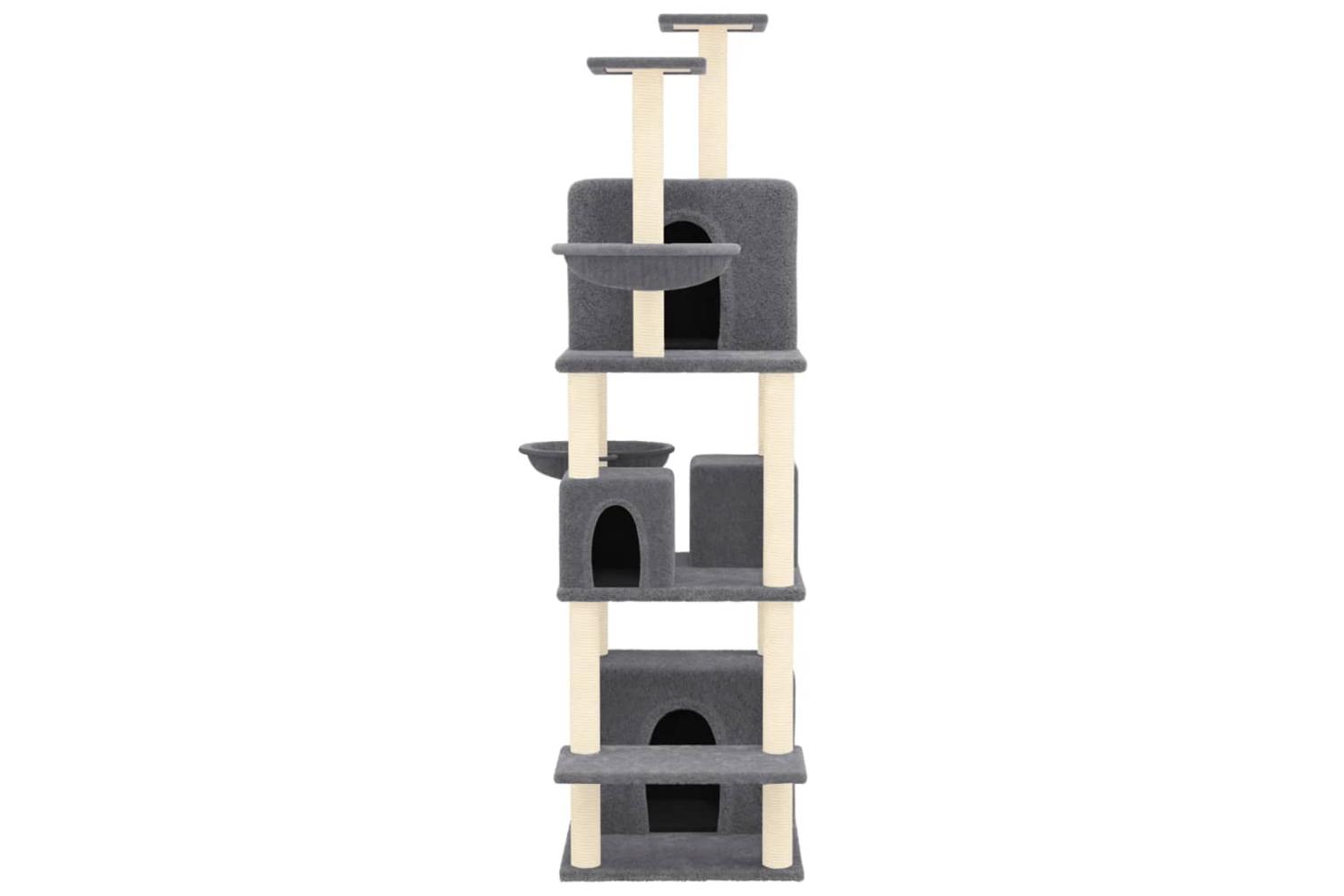 - All-in-one cat tower: The multi-level cat furniture is designed with 4 houses, 2 hammocks and platforms, providing a perfect place for your cats to climb, perch, scratch, hide, and also relax.