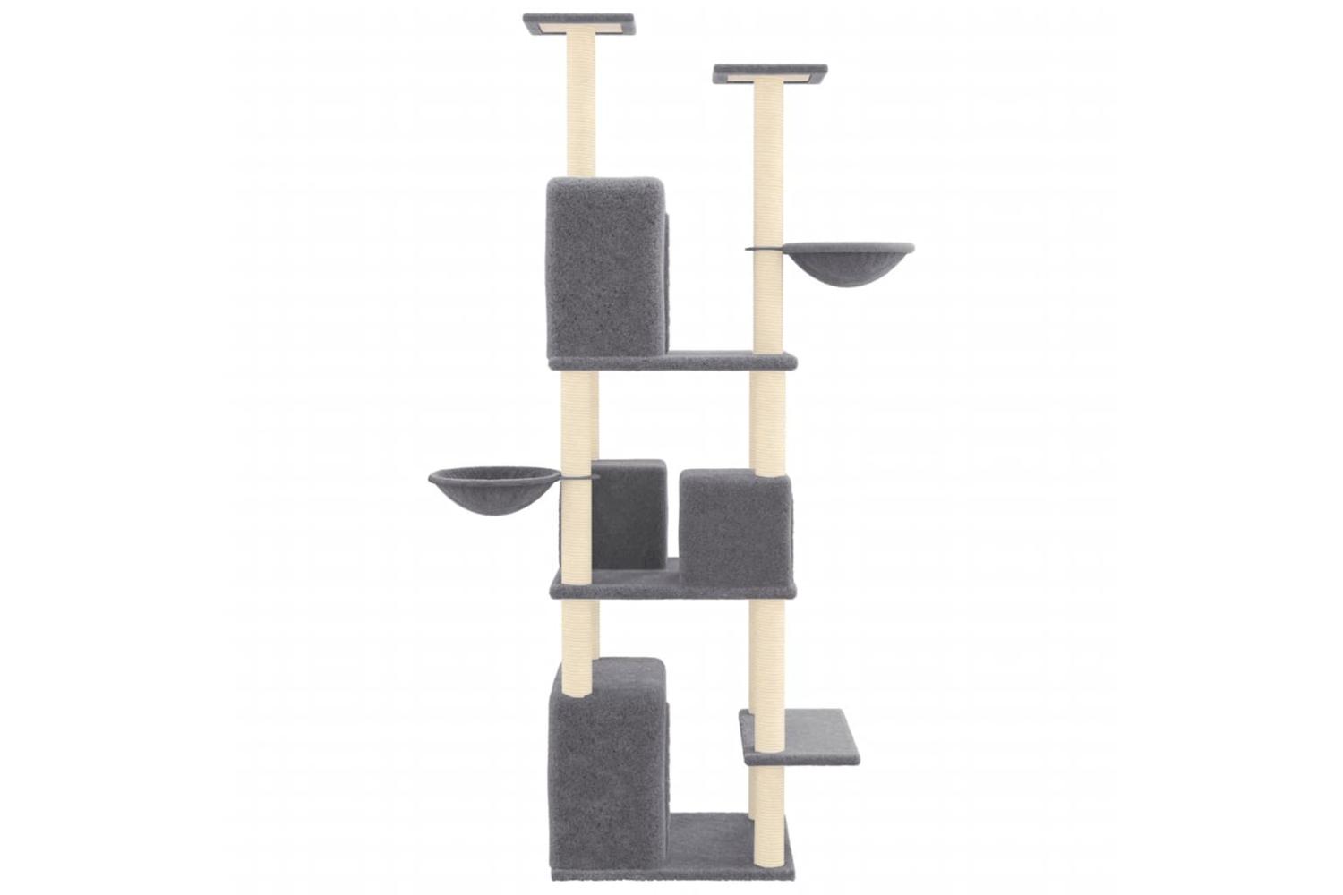 - Natural sisal posts: The resilient and strong natural sisal posts of the cat scratching tree are perfect for your beloved cats to satisfy their scratching instinct and prevent them from scratching your furniture