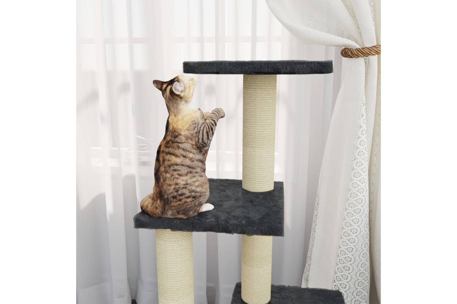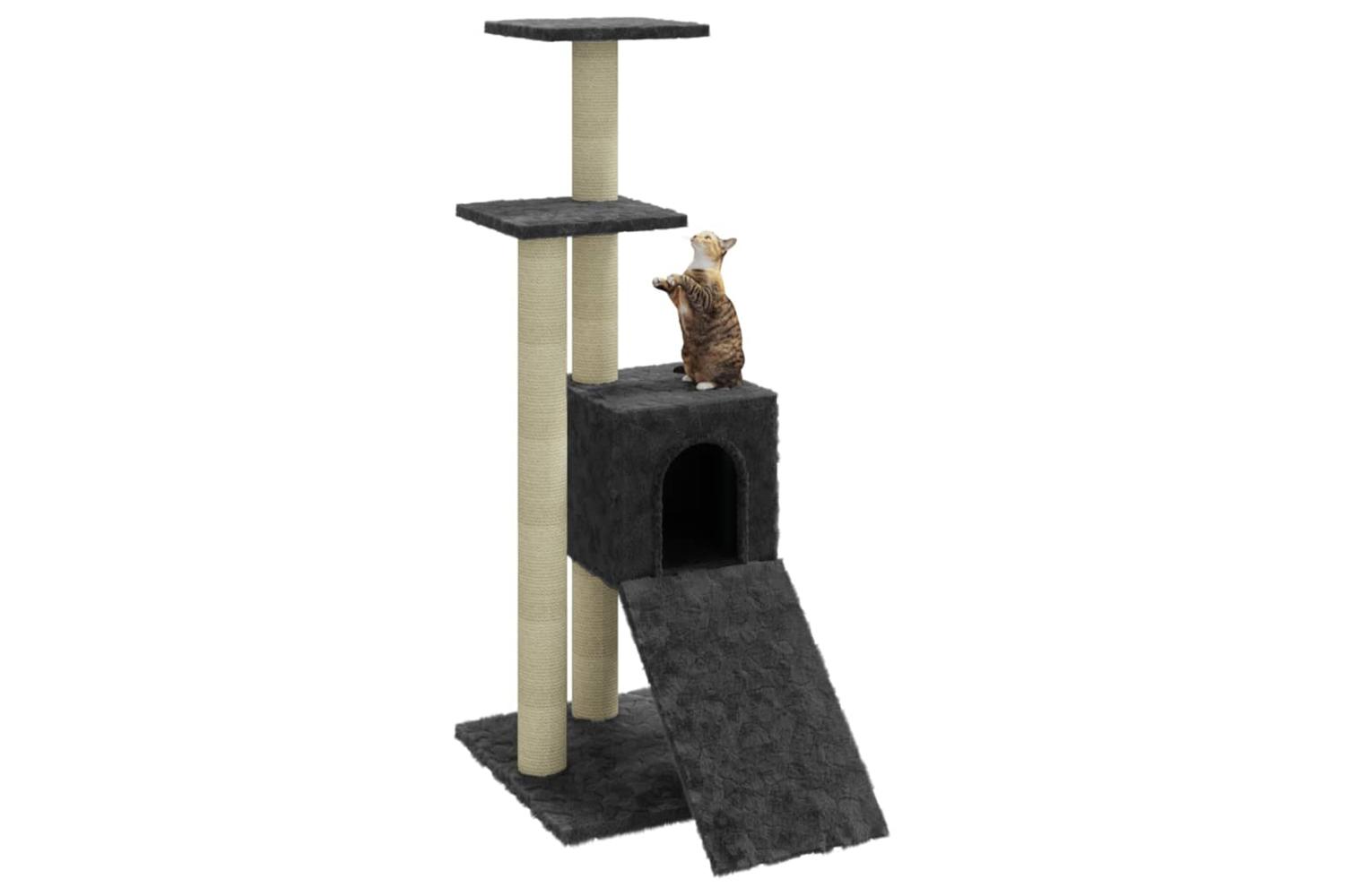 Your furry friends can sharpen their claws on the scratching posts wrapped in sisal rope, which provides a healthy outlet for their scratching instincts. Additionally, they will also rejoice in chasing after each other while jumping up and down this fun play centre. When they've enjoyed enough playtime, your little friends will love resting on the upper platforms where they have a better view. Besides, they can also hide in the cosy house to take a nap, or take a load off on the comfortable plush seat. There is also a ramp at the bottom for them to climb.