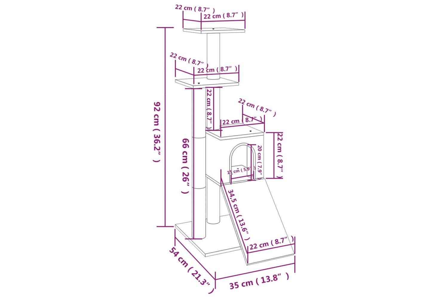 - With a ramp, a house, scratching posts and platforms