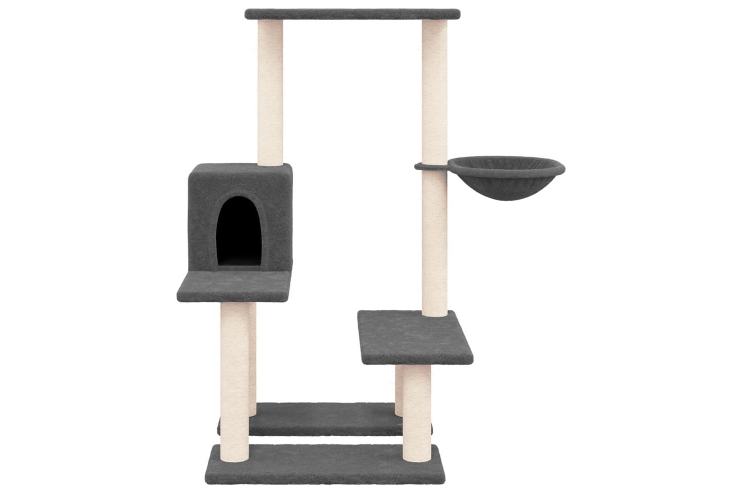 - Natural sisal posts: The resilient and strong natural sisal posts of the cat scratching tree are perfect for your beloved cats to satisfy their scratching instinct and prevent them from scratching your furniture