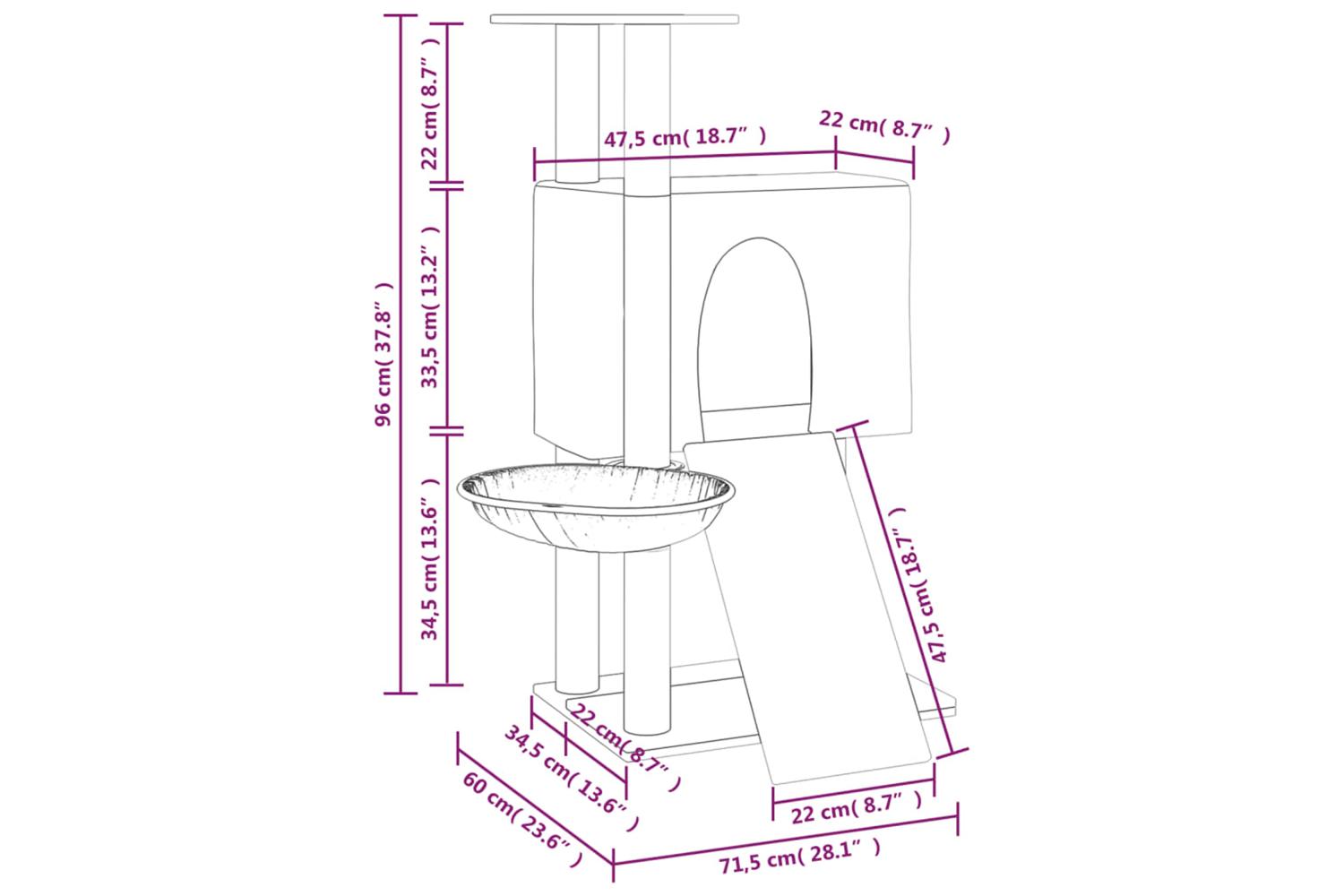 - Dimensions: 71.5 x 60 x 96 cm (L x W x H)